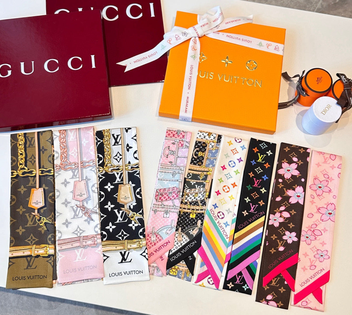 LV Twilly Scarf 120cm White Colorful Silk 965662