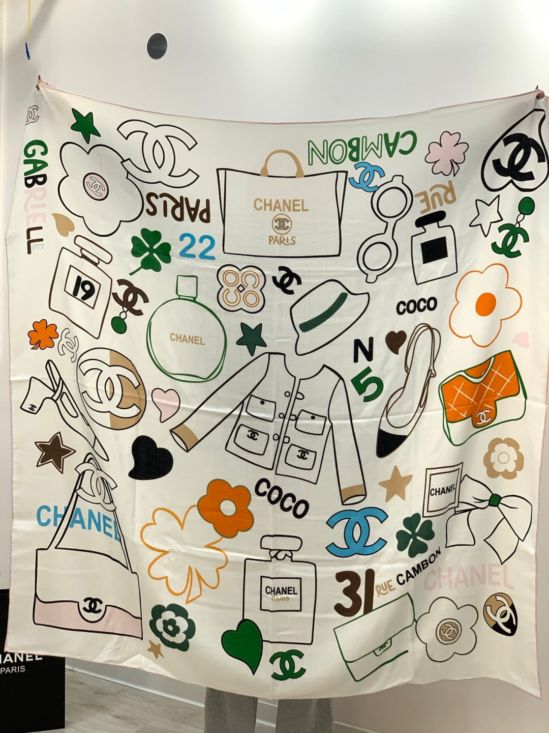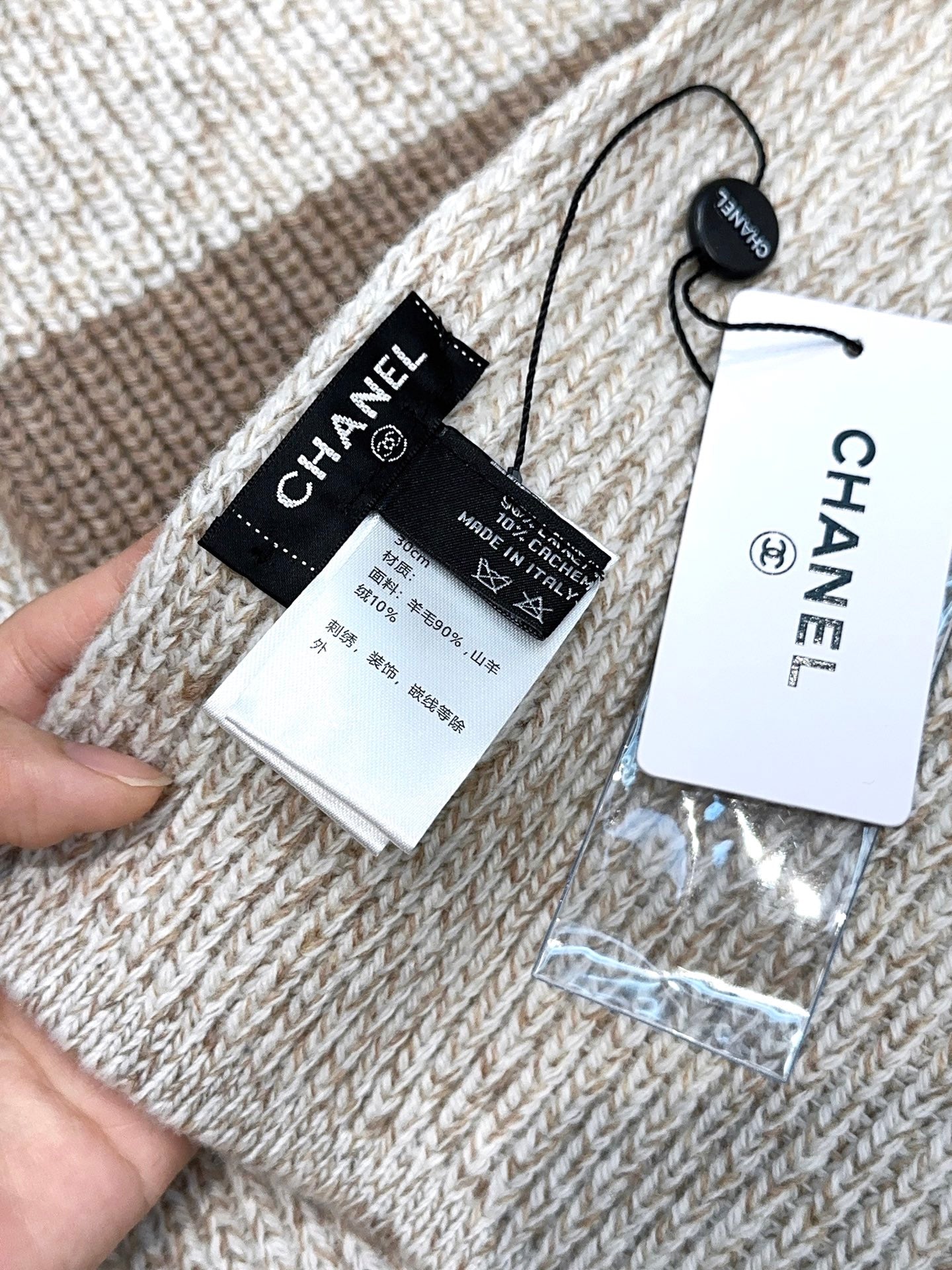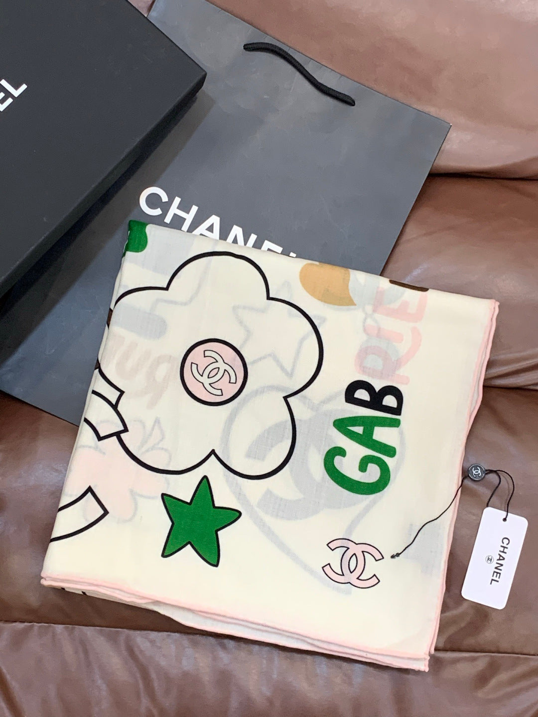 CC 25 Reversible Scarf 135cm Beige White Cashmere 970902