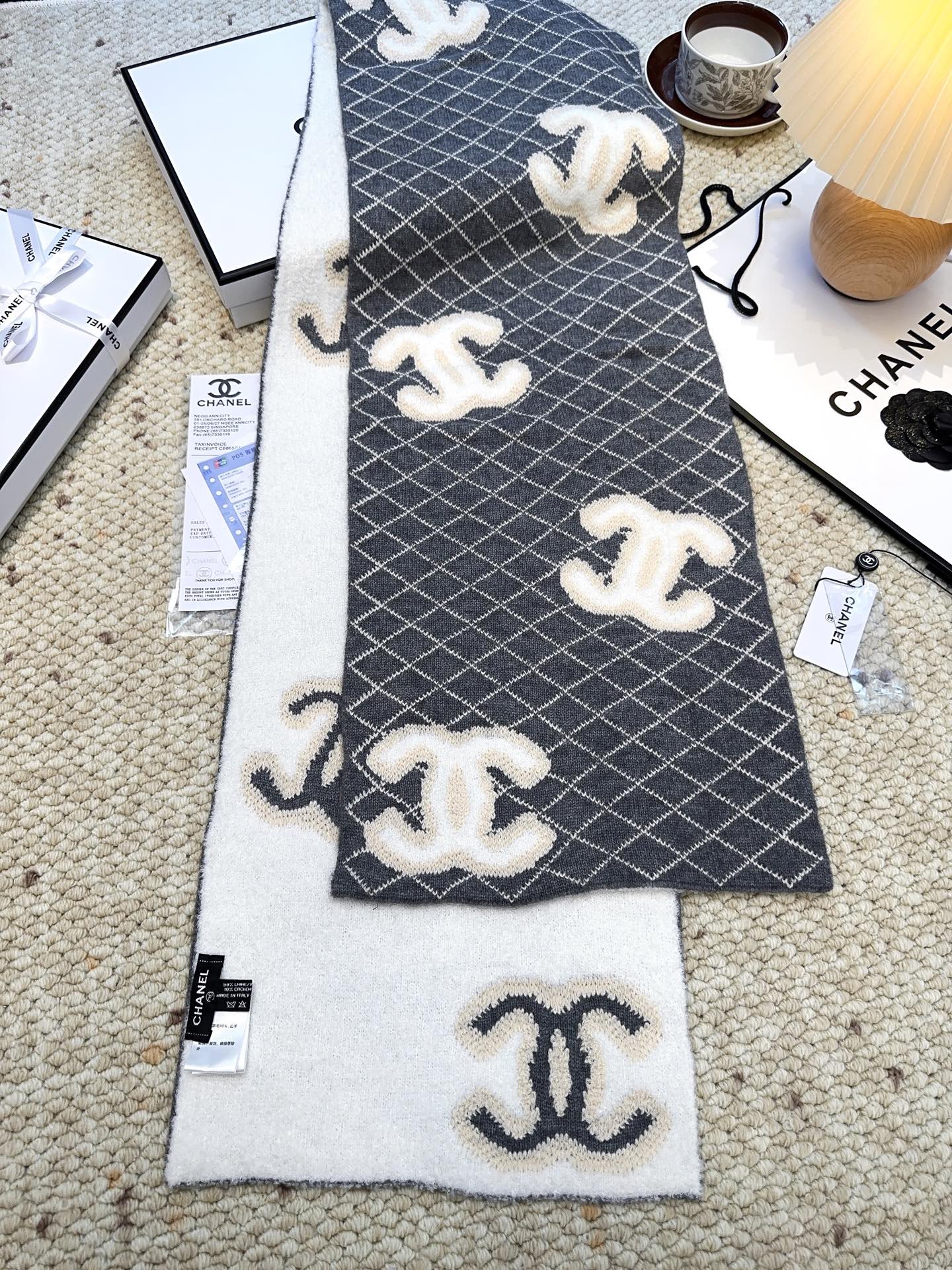 CC 25 Reversible Scarf 135cm Black White Cashmere 970901