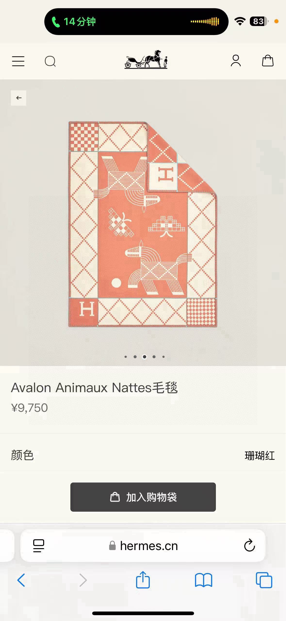 HM Avalon Epopee Blanket Orange Cashmere Wool 524203