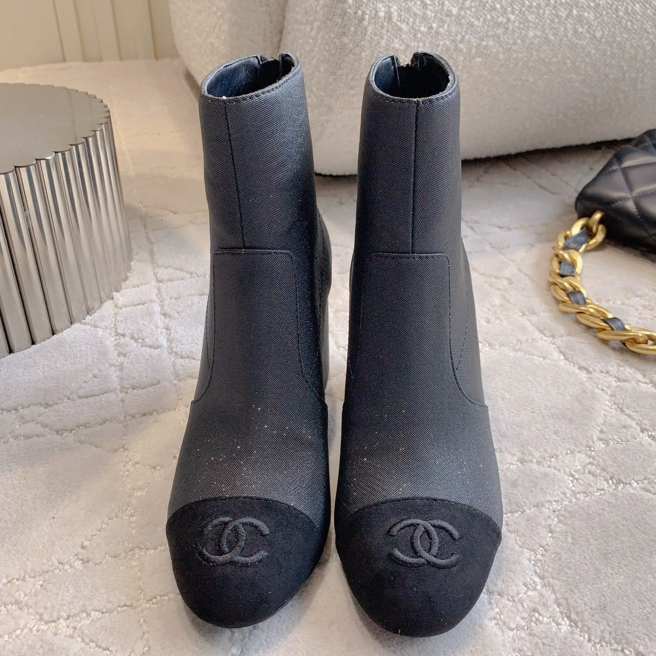 CC 25 Short Boot Navy Blue Black Denim Fabric Calfskin 515266