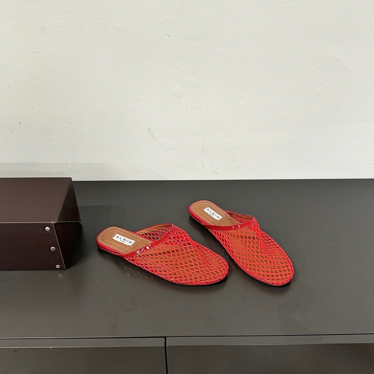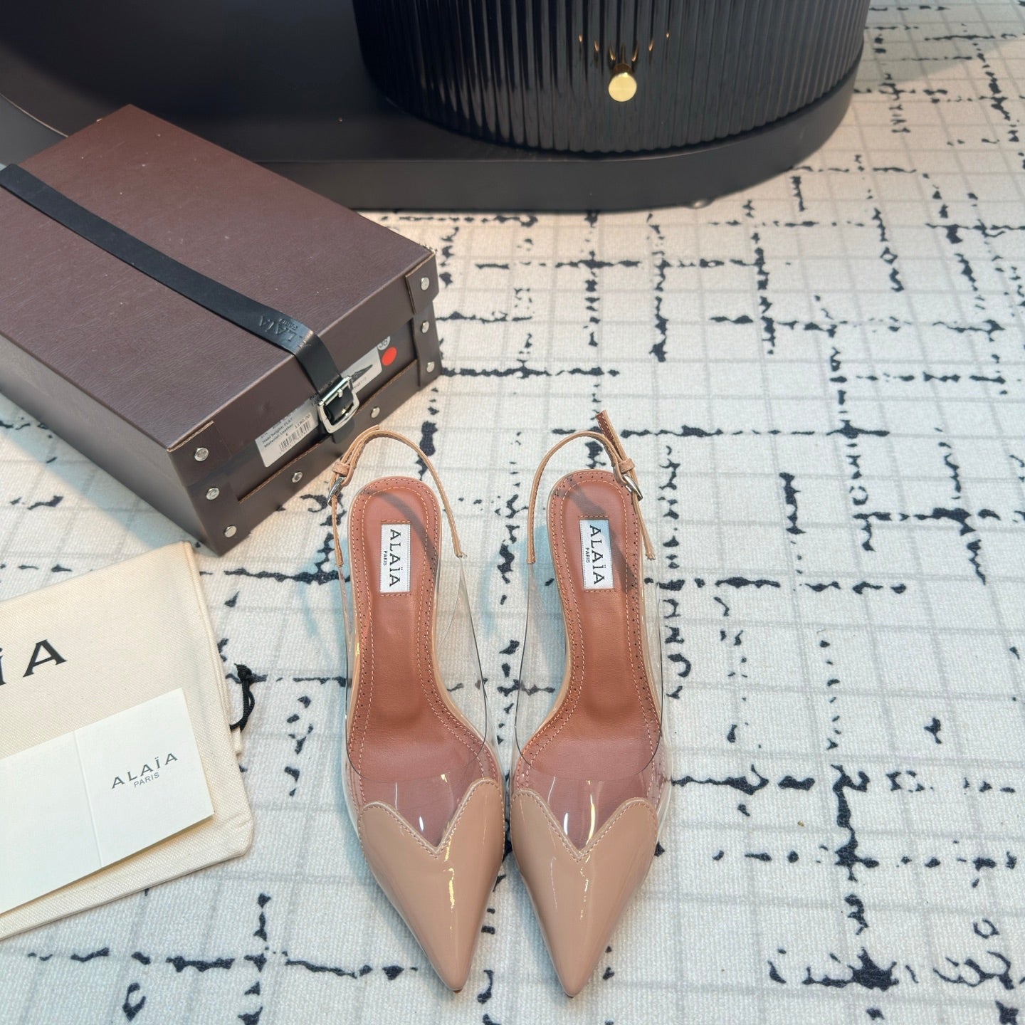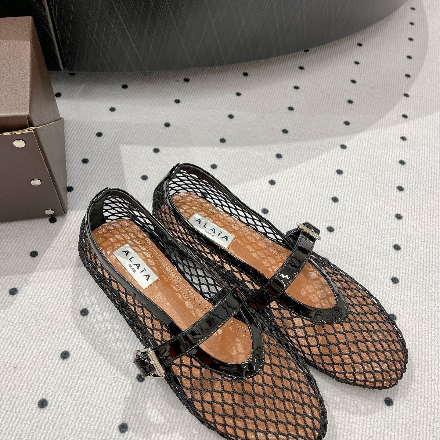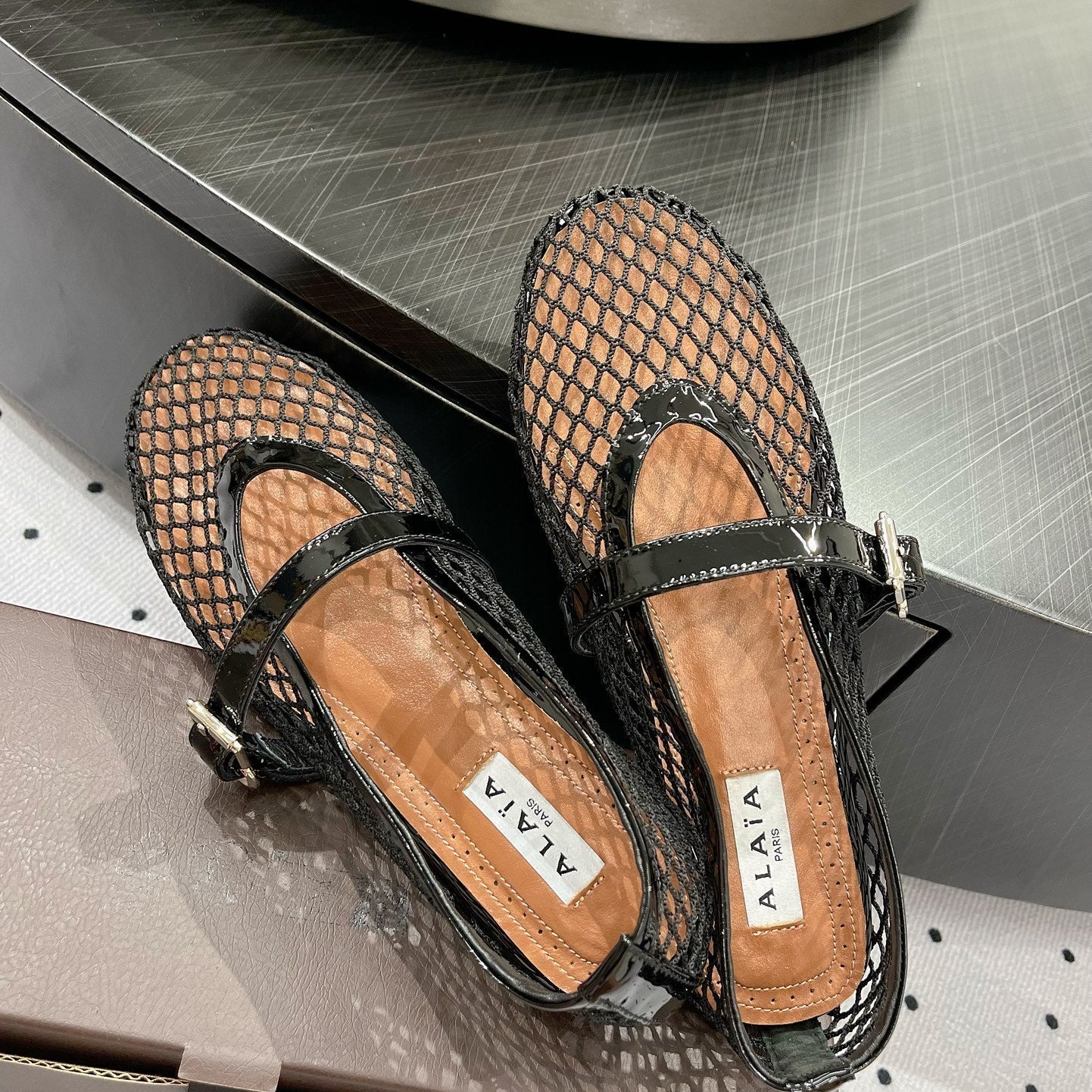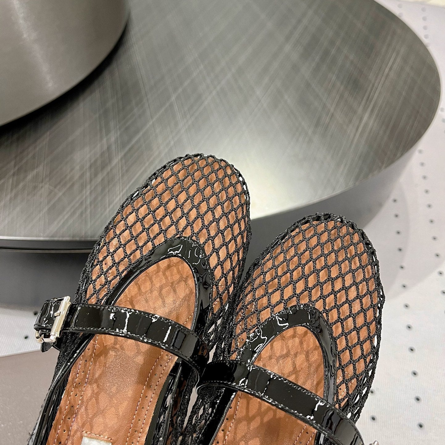 ALAIA PEARL MARY JANE SHOES IN LIGHT YELLOW MESH AND CALFSKIN