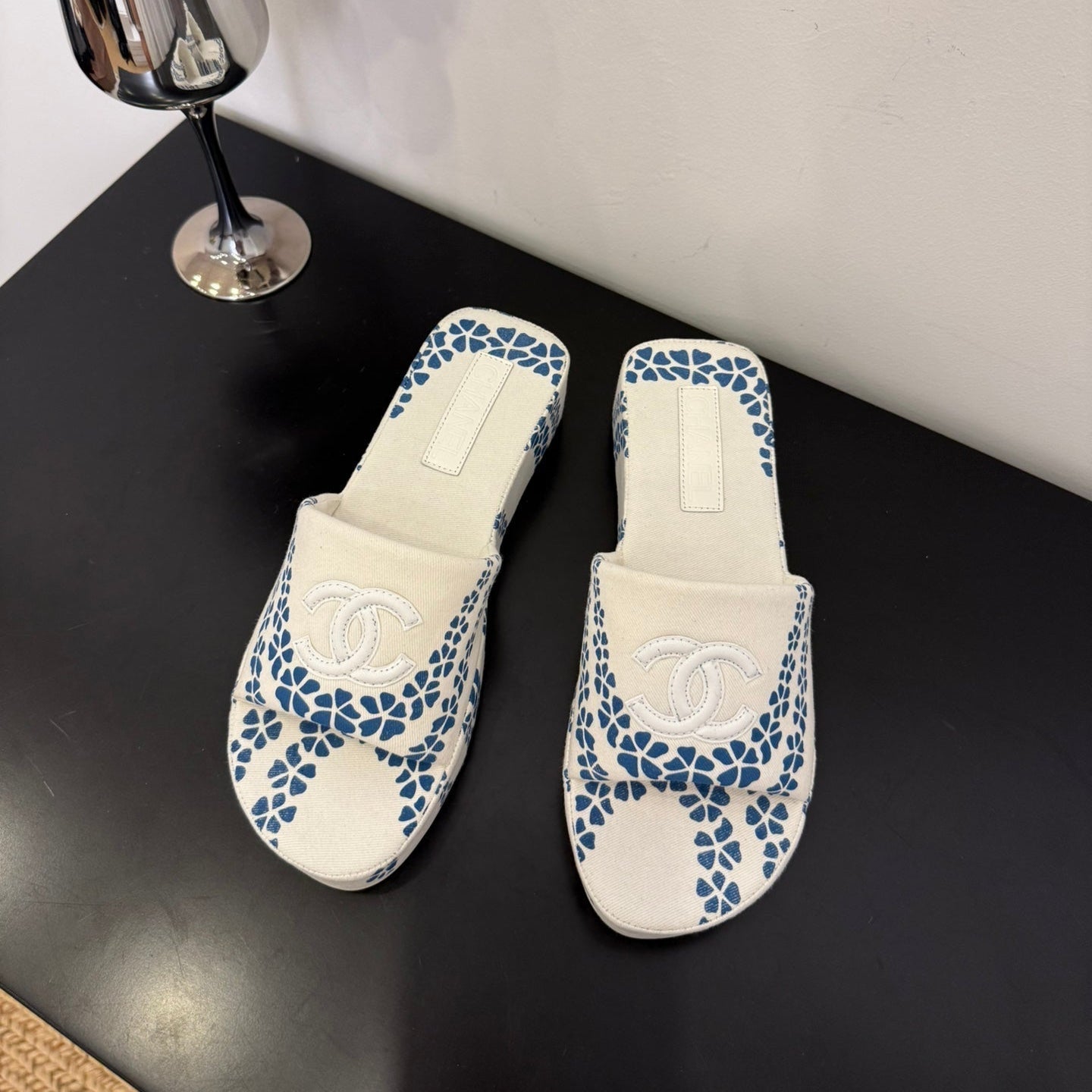 CC 25 Flower Slippers White Blue Fabric 330772