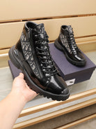 CD COMBAT ANKLE BOOT BLACK AND BEIGE POLISHED CALFSKIN