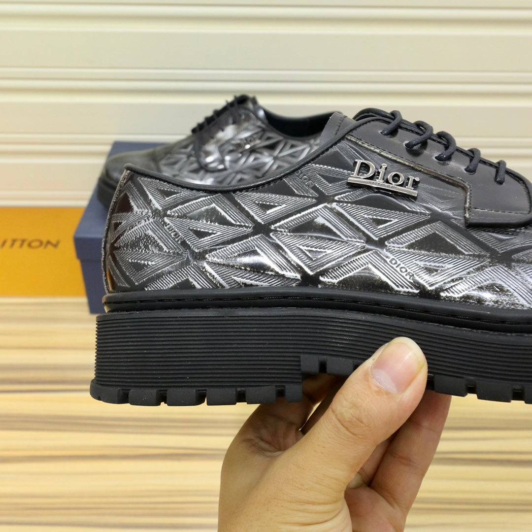CD LACE-UP LOAFER BLACK MIX SILVER GEOMETRIC CALFSKIN