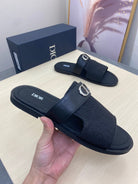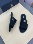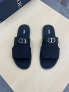 CD SYMBOL SLIDE CUT SANDAL BLACK JACQUARD