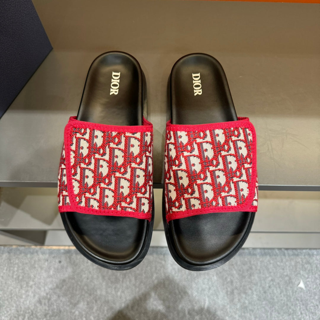 CD VELCRO STRAP SLIPPER RED JACQUARD