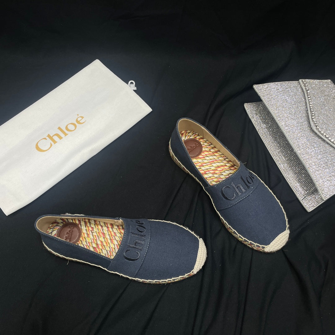 CHLOÉ WOVEN LOAFER IN BLACK DENIM AND COLORFUL RAFFIA