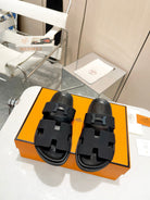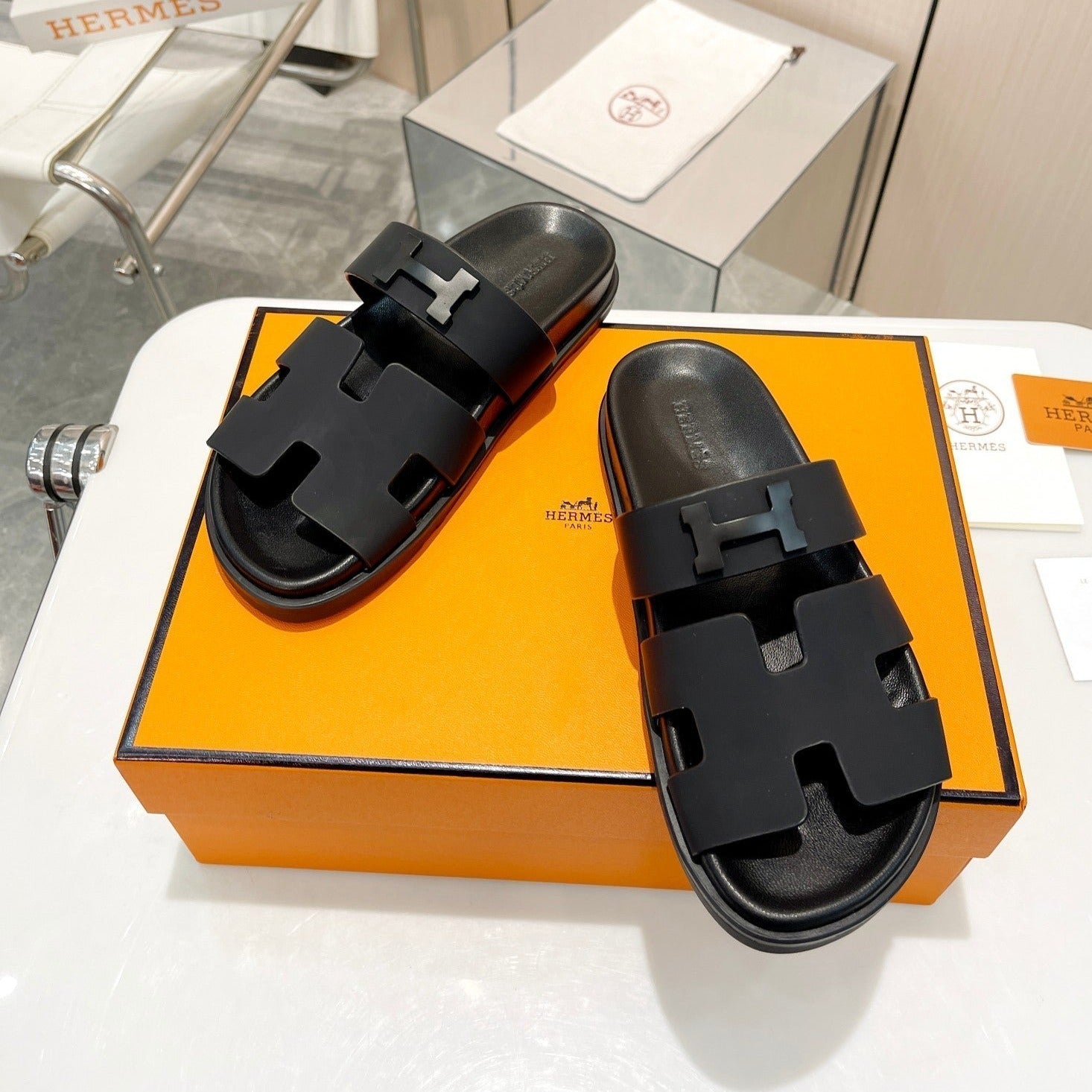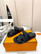 HM CHYPRE SANDAL BLACK WITH H-BUCKLECALFSKIN