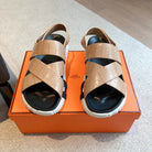 HM ELECTRIC CROCODILE MOTIF SANDAL TAN CALFSKIN