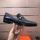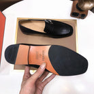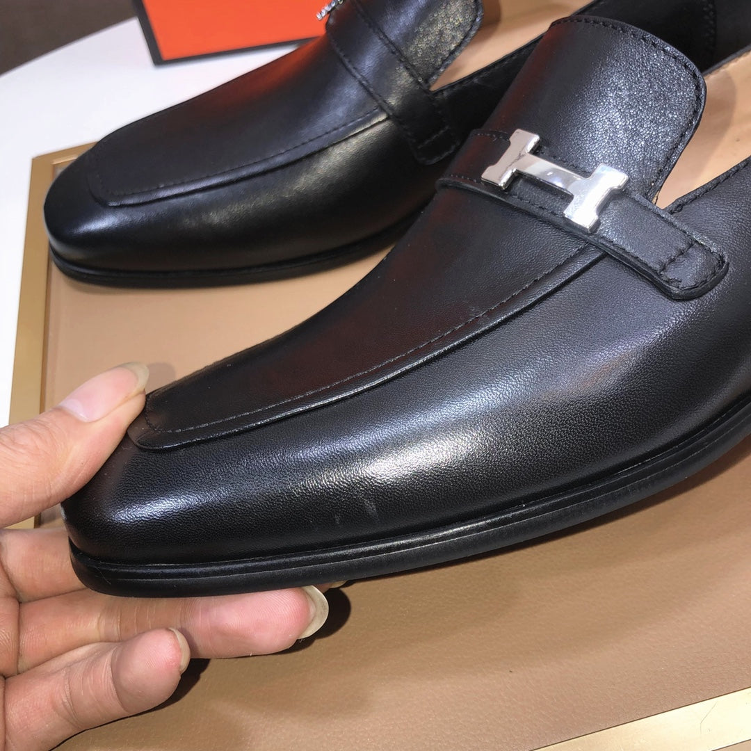 HM GIOVANNI WHITE H-BUCKLE LOAFER BLACK CALFSKIN