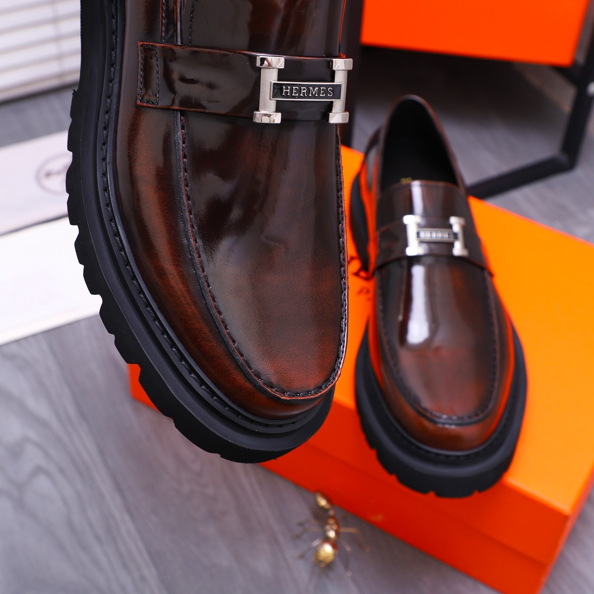 HM GREGOIRE LOAFER GLOSSY WINE CALFSKIN