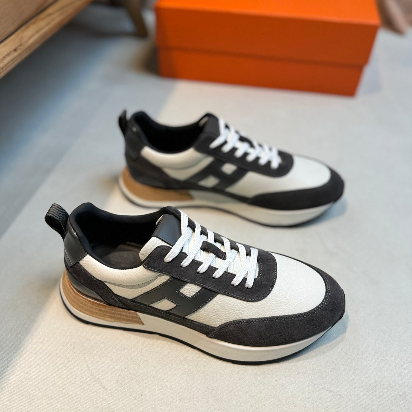 HM INTERACTIVE LACE-UP SNEAKER GRAY AND WHITE CALFSKIN