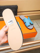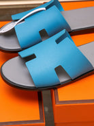 HM IZMIR SANDAL GRAY AND CERULEAN CALFSKIN
