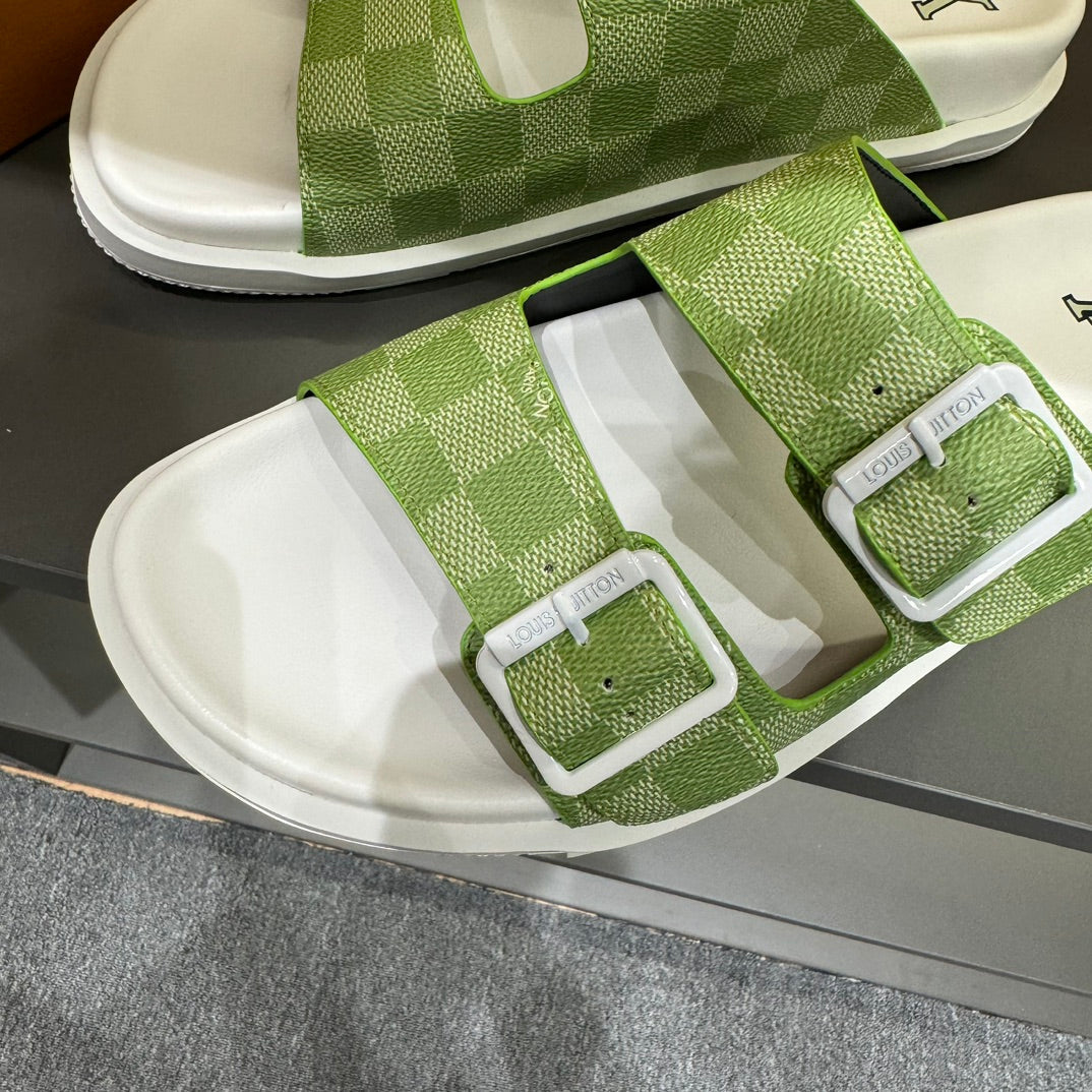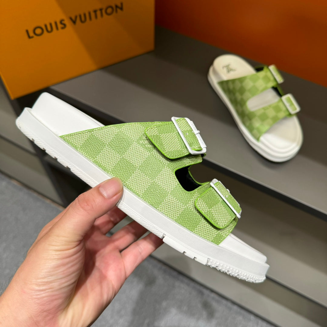 LV DAD SANDAL PEAR GREEN DAMIER CALFSKIN
