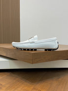 LV LOAFER IN WHITE WRINKLE CALFSKIN WITH SILVER LOGO