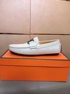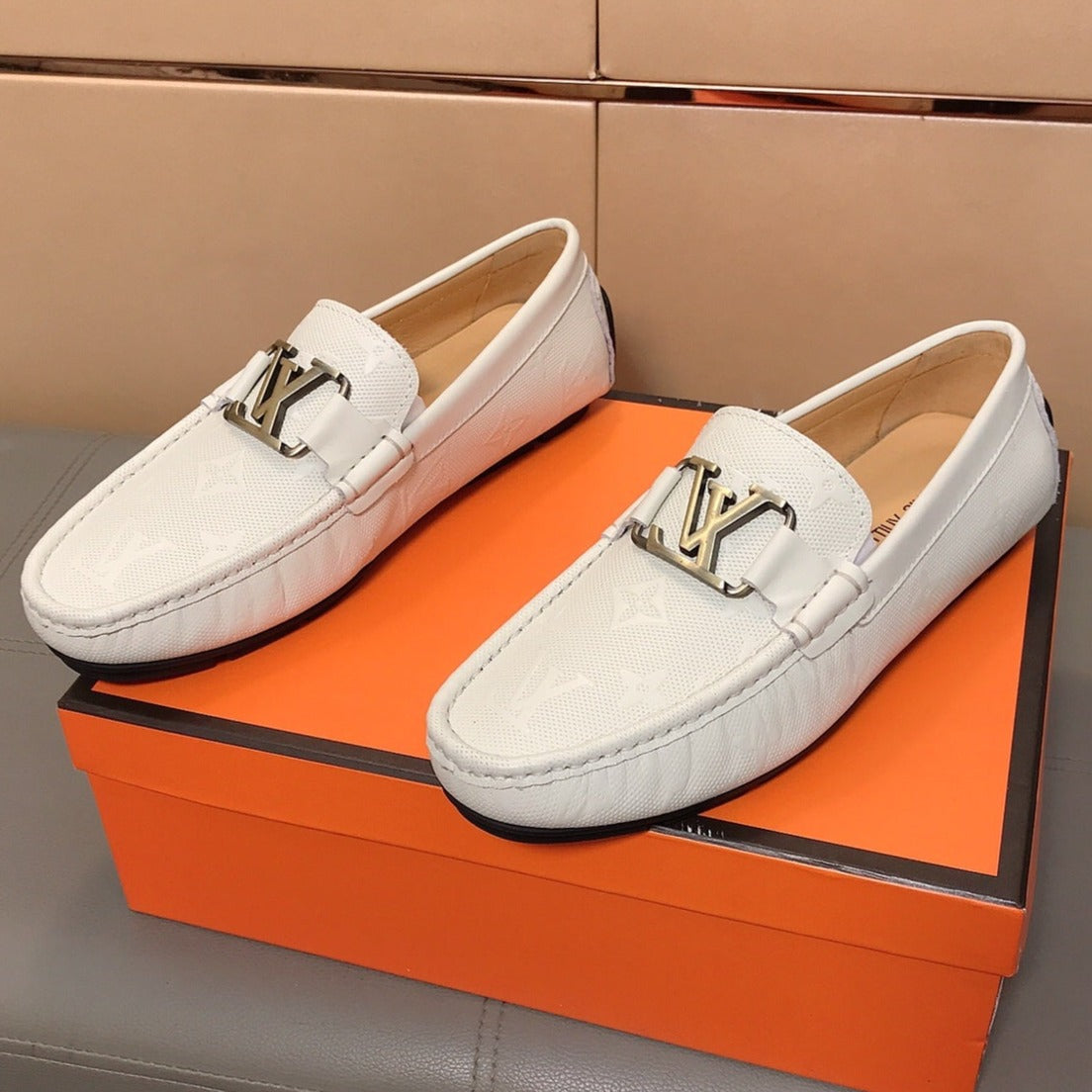 LV LOAFERS IN WHITE CALFSKIN WITH BRANDED EMBOSSING