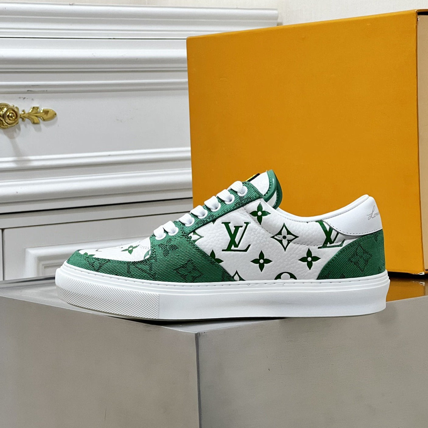 LV MONOGRAM GREEN AND WHITE SNEAKERS