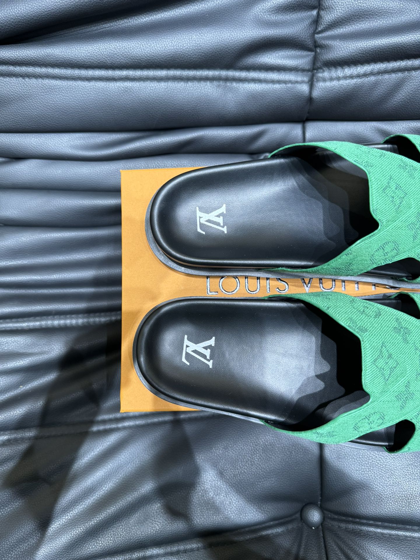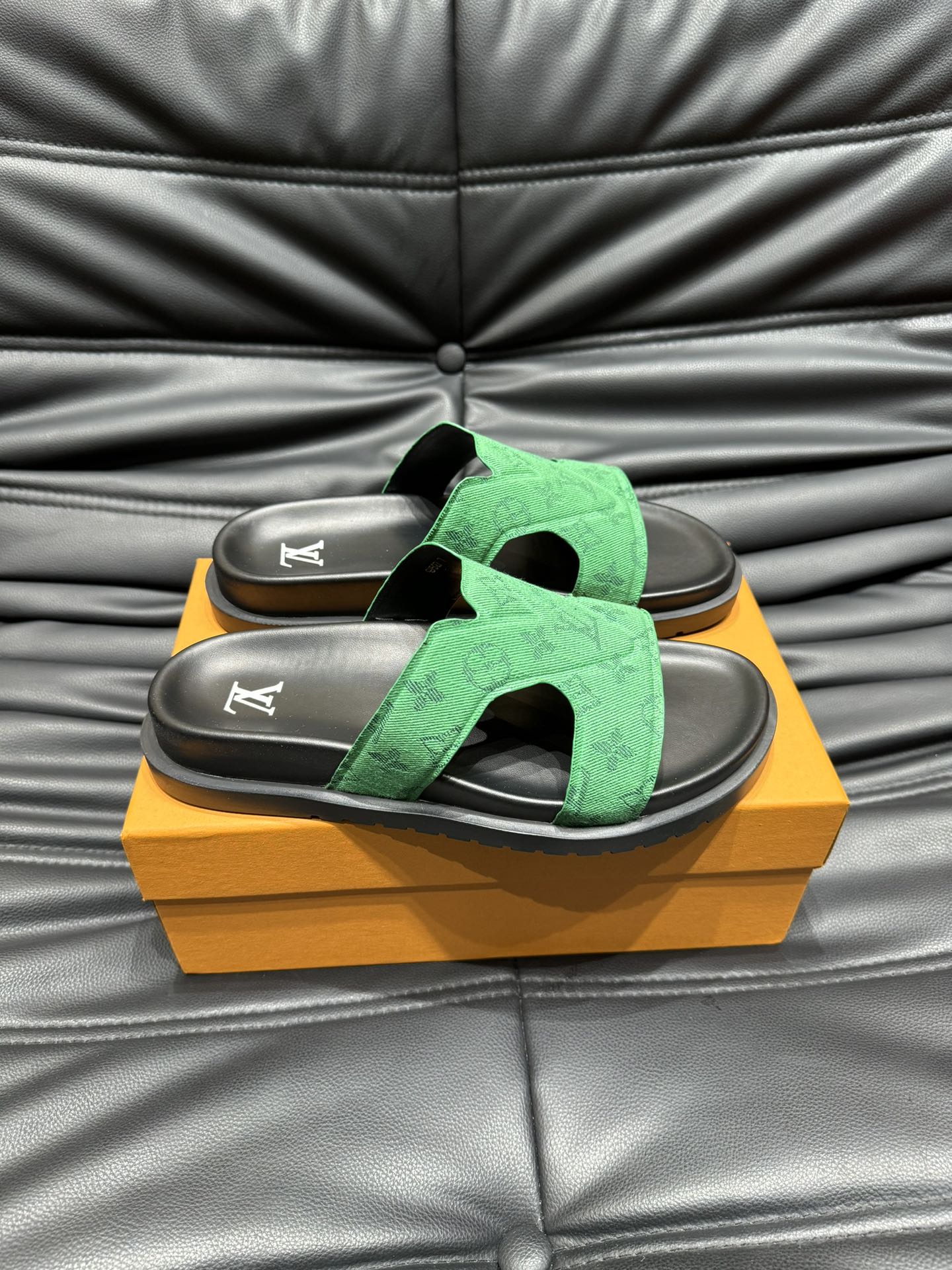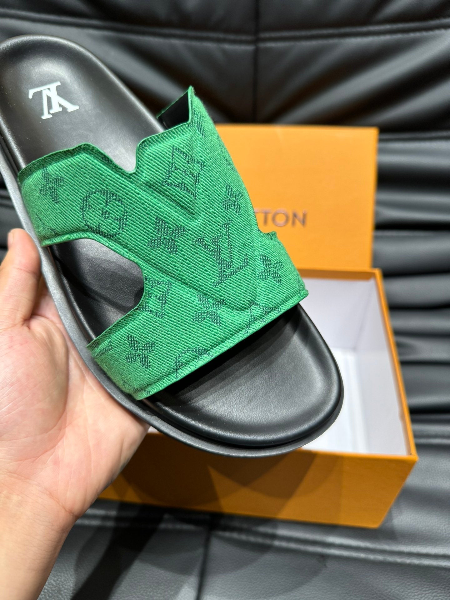 LV OASIS MULE IN EMERALD GREEN MONOGRAM JACQUARD