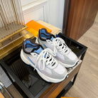 RUN 55 series leisure sports shoes are made of composite mesh fabric, rubber, adhesive film, and other technological materials. They are paired with solid color cowhide and suede cowhide, exuding a sporty style. The added cushioned lining and thickened rubber outsole provide comfortable wear. Monogram canvas heel straps and other logos convey brand interest, combining fashion and practicality. It won't rub your feet and increases height by 5cm, forcefully giving you long legs! With good looks, height, and technical features, this modern sports shoe enhances the proportion of the thighs when worn and has high technology content. 😠Perfect details 💯