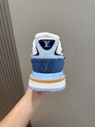 LV RUN AWAY SNEAKERS IN CERULEAN BLUE MESH FABRIC AND SUEDE