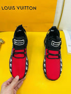 LV SNEAKER IN BLACK MIX RED BREATHABLE MESH FABRIC