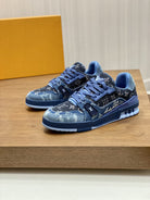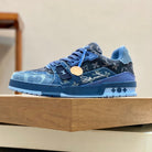 • Upper: "Bold colors are used to highlight the exquisite design, inspired by classic basketball shoes. The LV logo is hand-embroidered on one side."