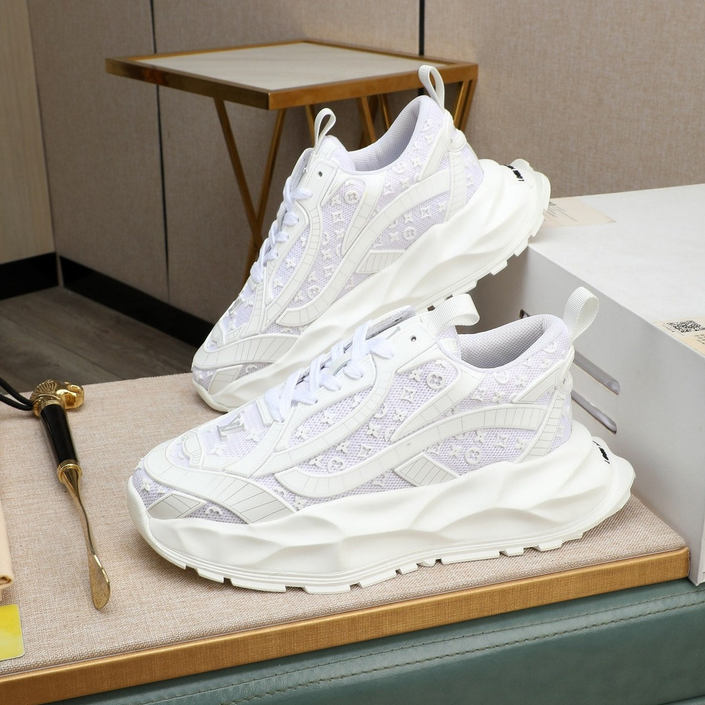 LV TRAINER IN WHITE CALFSKIN AND BREATHABLE MESH