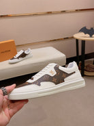 LV TRAINER IN WHITE MIX CHOCOLATE BROWN CALFSKIN