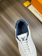 LV TRAINER SNEAKER WHITE MIX NAVY BLUE CALFSKIN AND BREATHABLE FABRIC