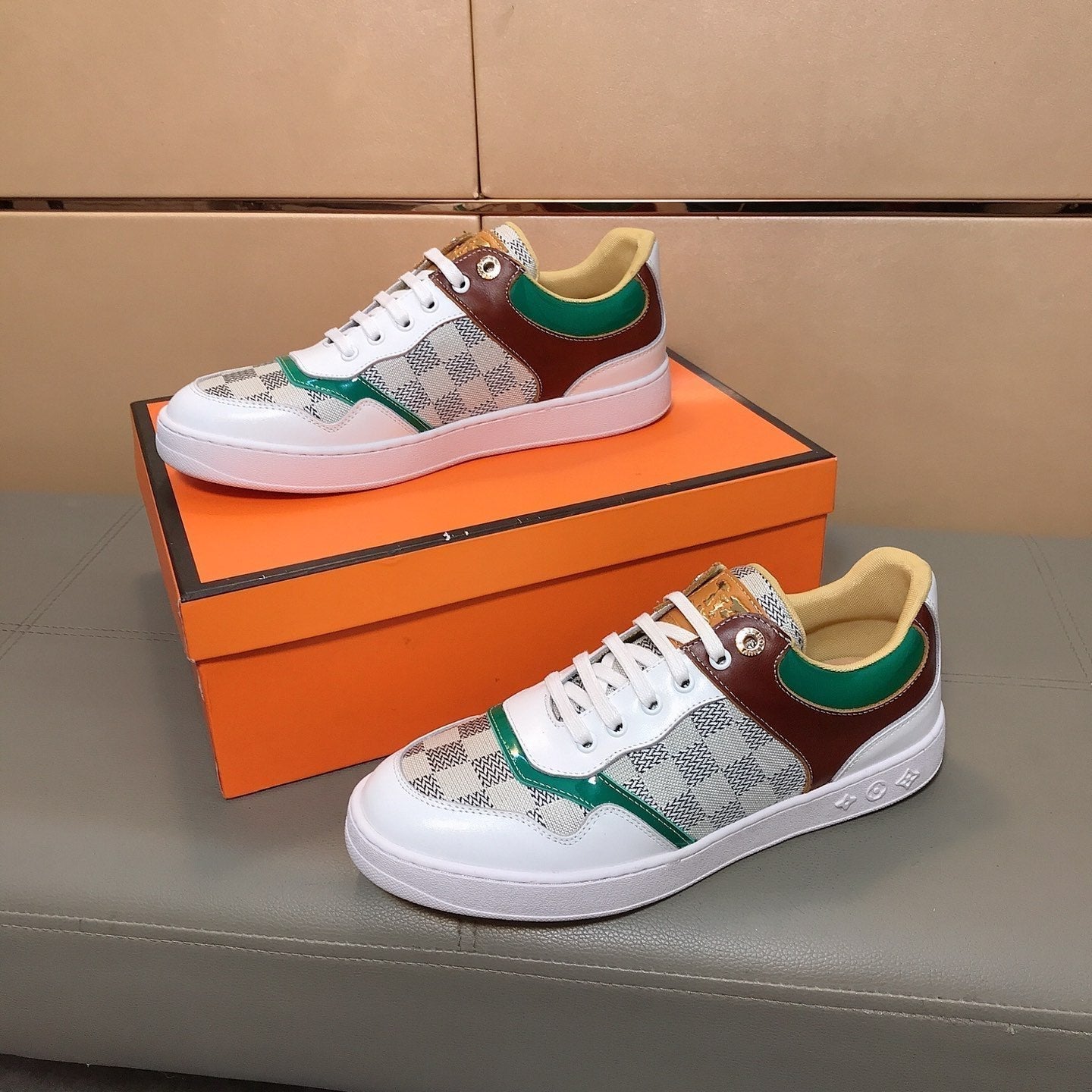 LV TRAINER WHITE CALFSKIN AND BEIGE BROWN DAMIER CANVAS