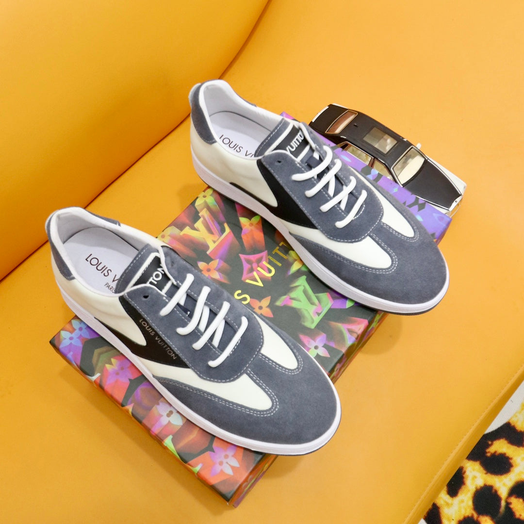 LV TRAINERS IN GREY SUEDE AND WHITE CALFSKIN