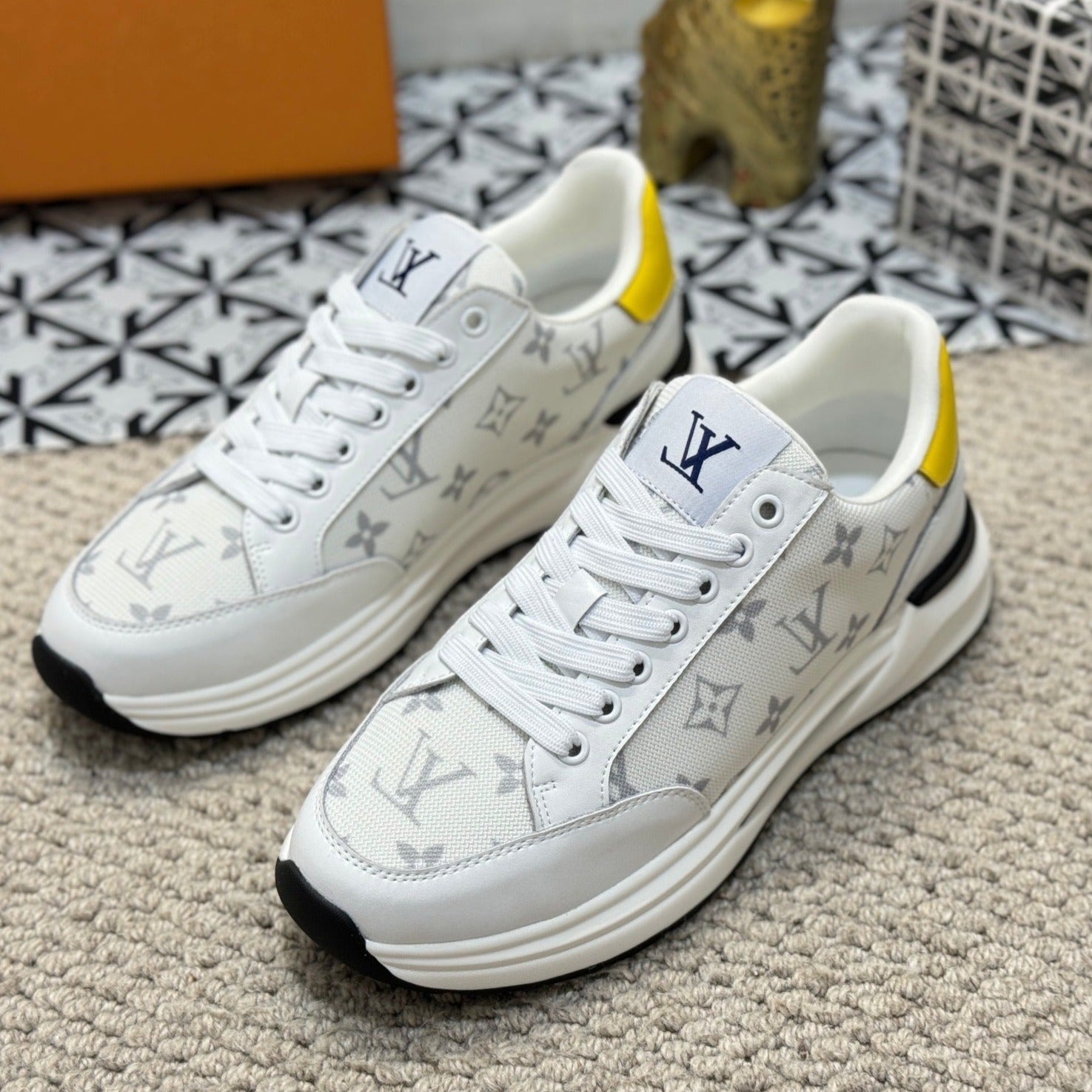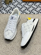 LV TRAINERS IN WHITE CALFSKIN AND JACQUARD