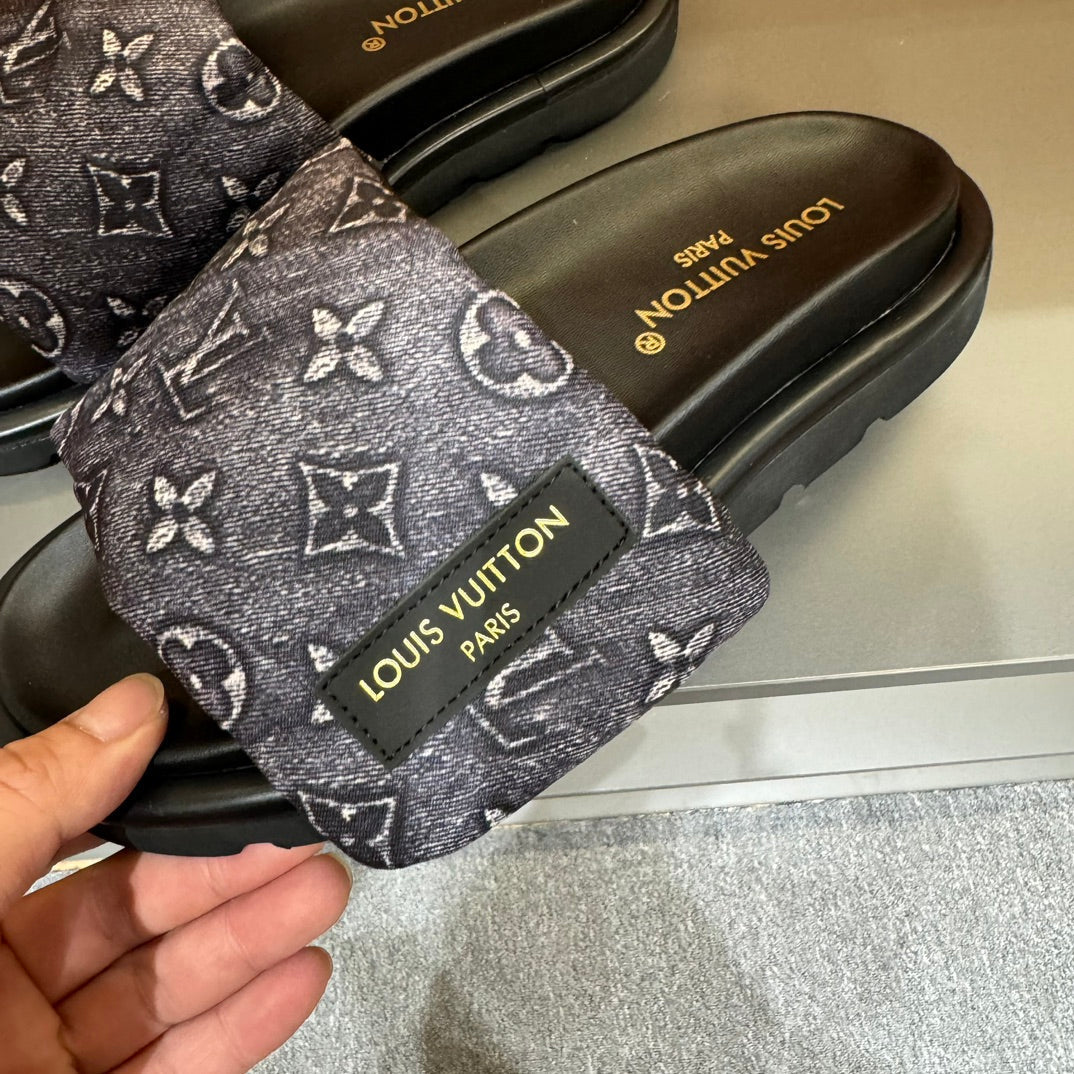 LV VELCRO SLIPPERS IN ASH GREY MONOGRAM JACQUARD