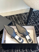 mule sandal beige tweed black lambskin