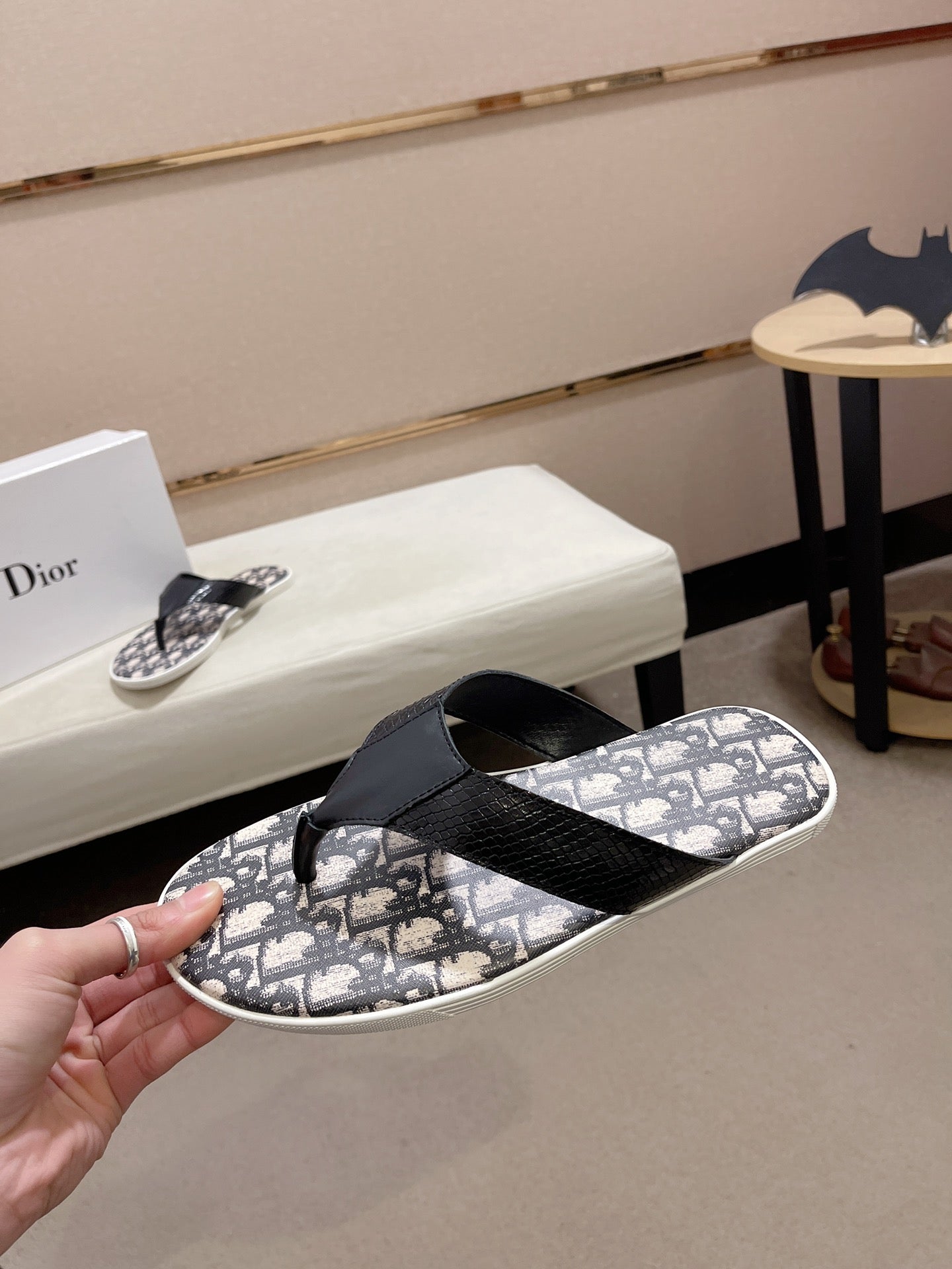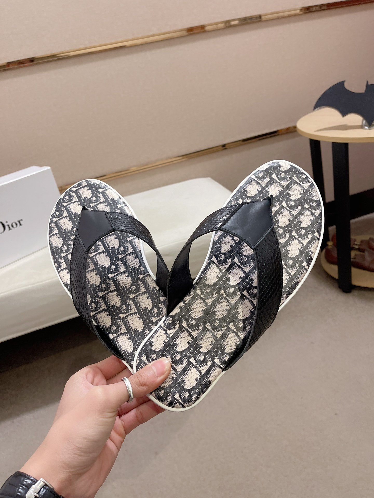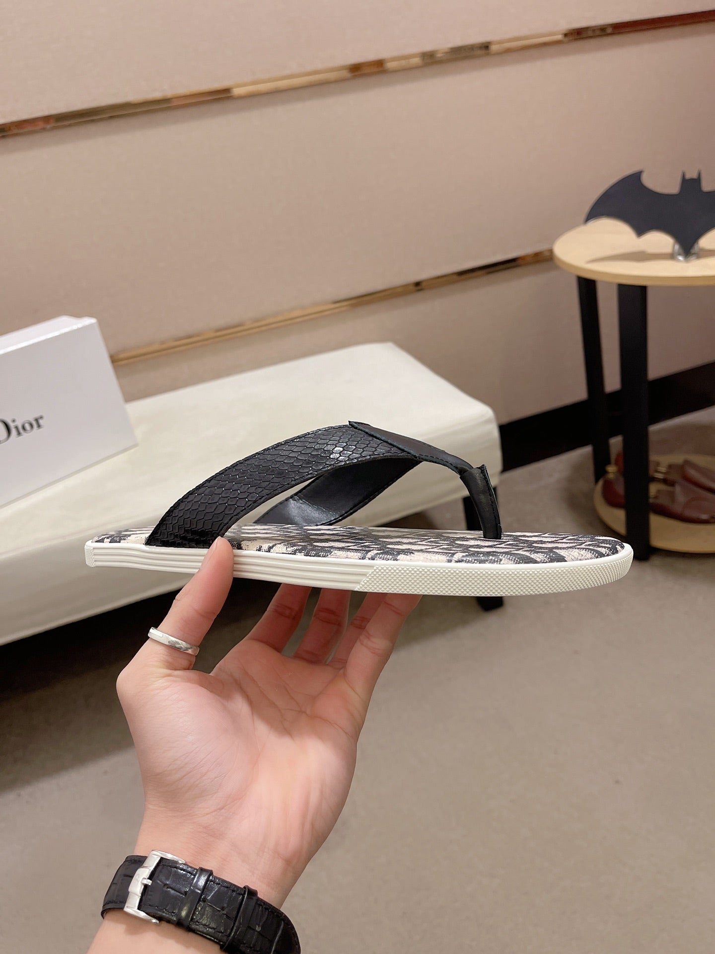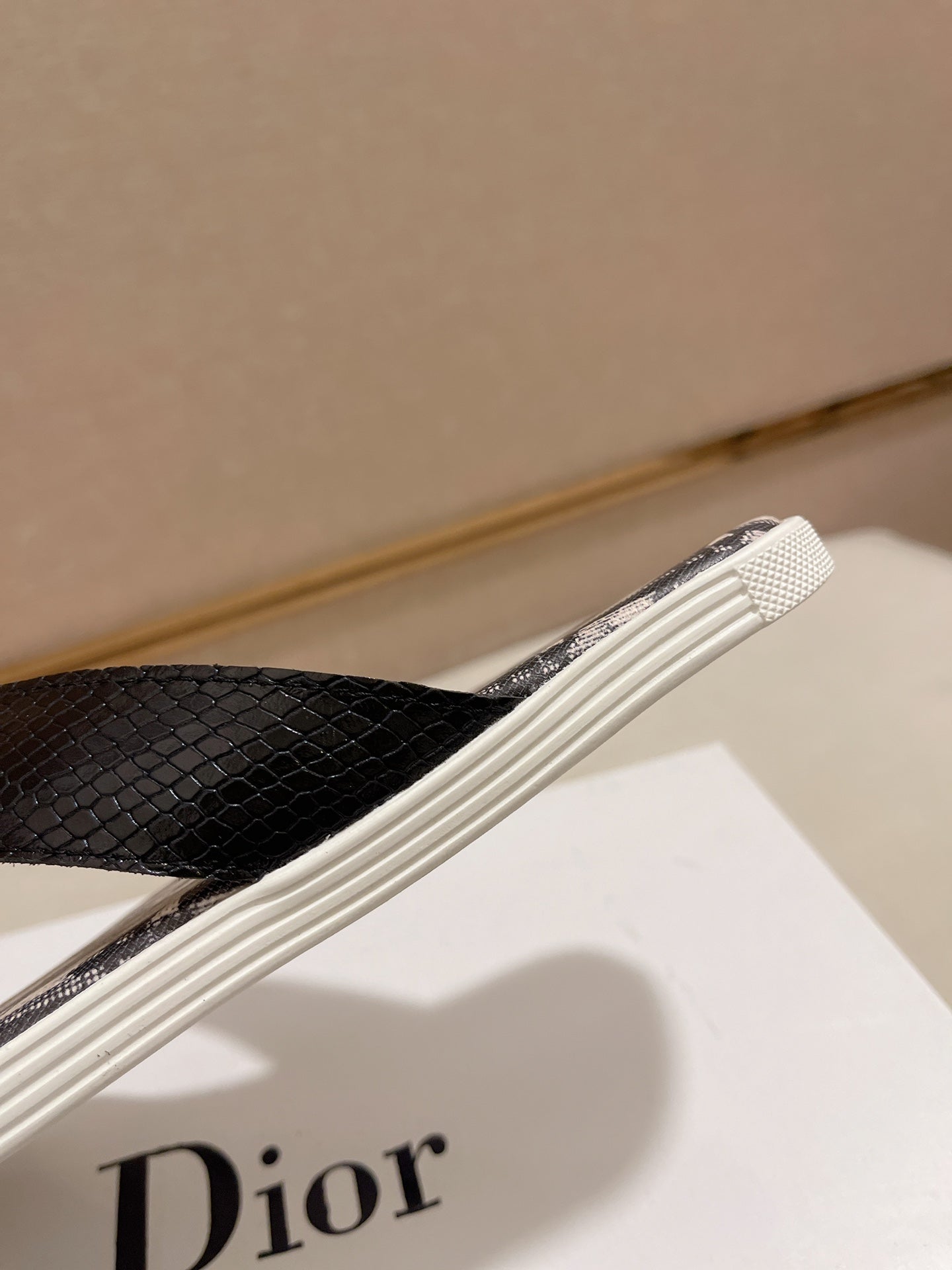 CD ALIAS THONG SNAKE MOTIF BLACK AND BEIGE CALFSKIN