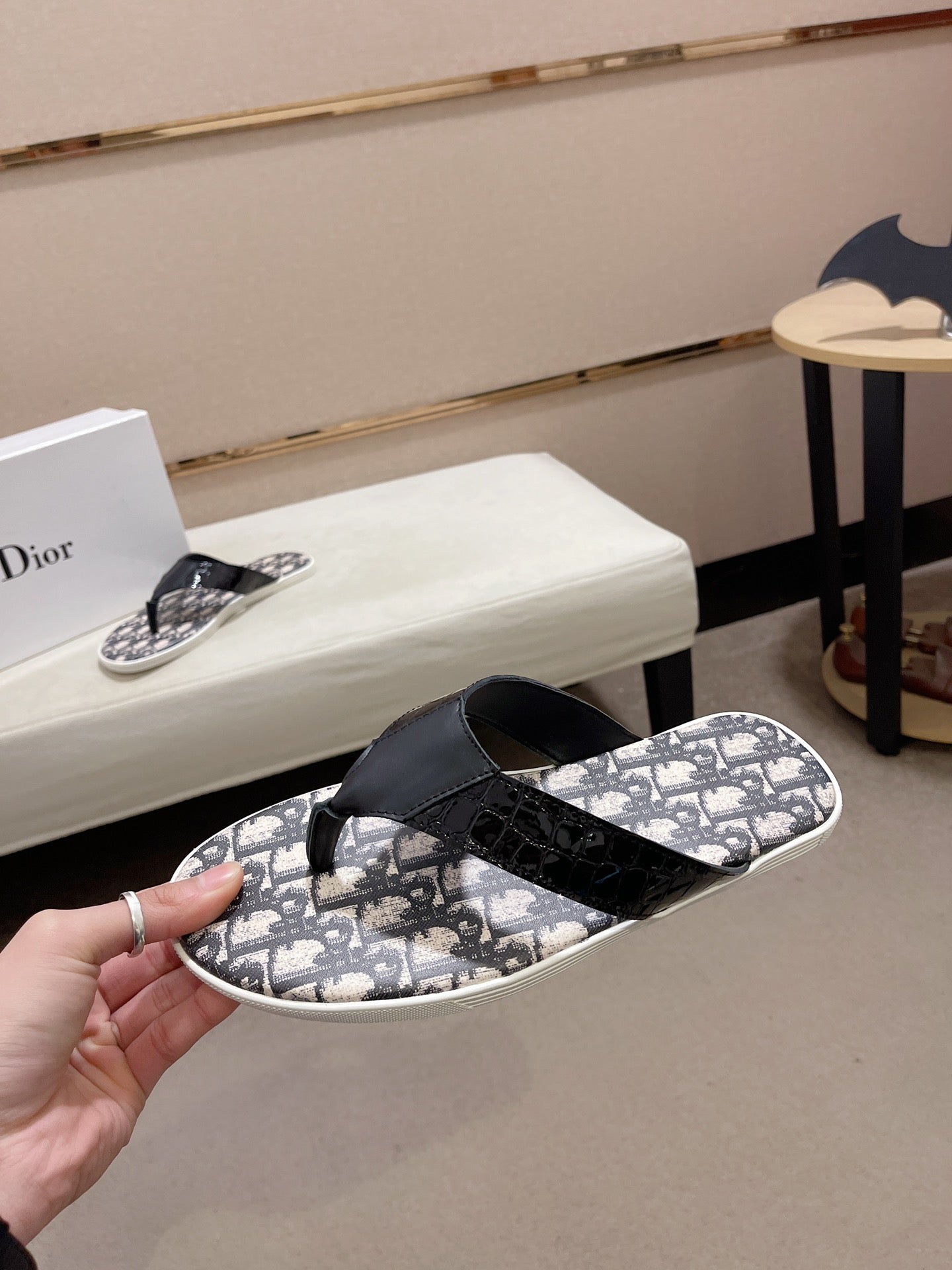 CD ALIAS THONG CROCODILE MOTIF BLACK AND BEIGE CALFSKIN