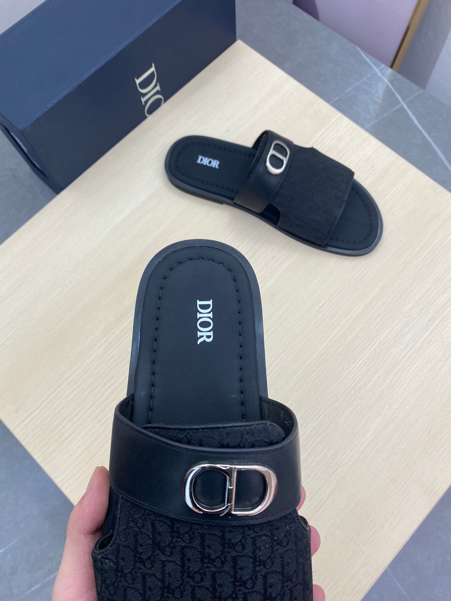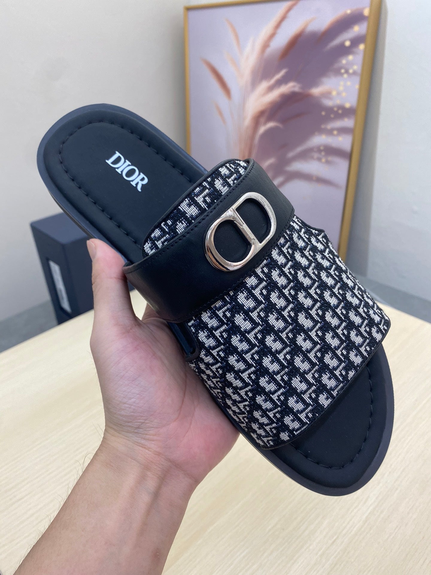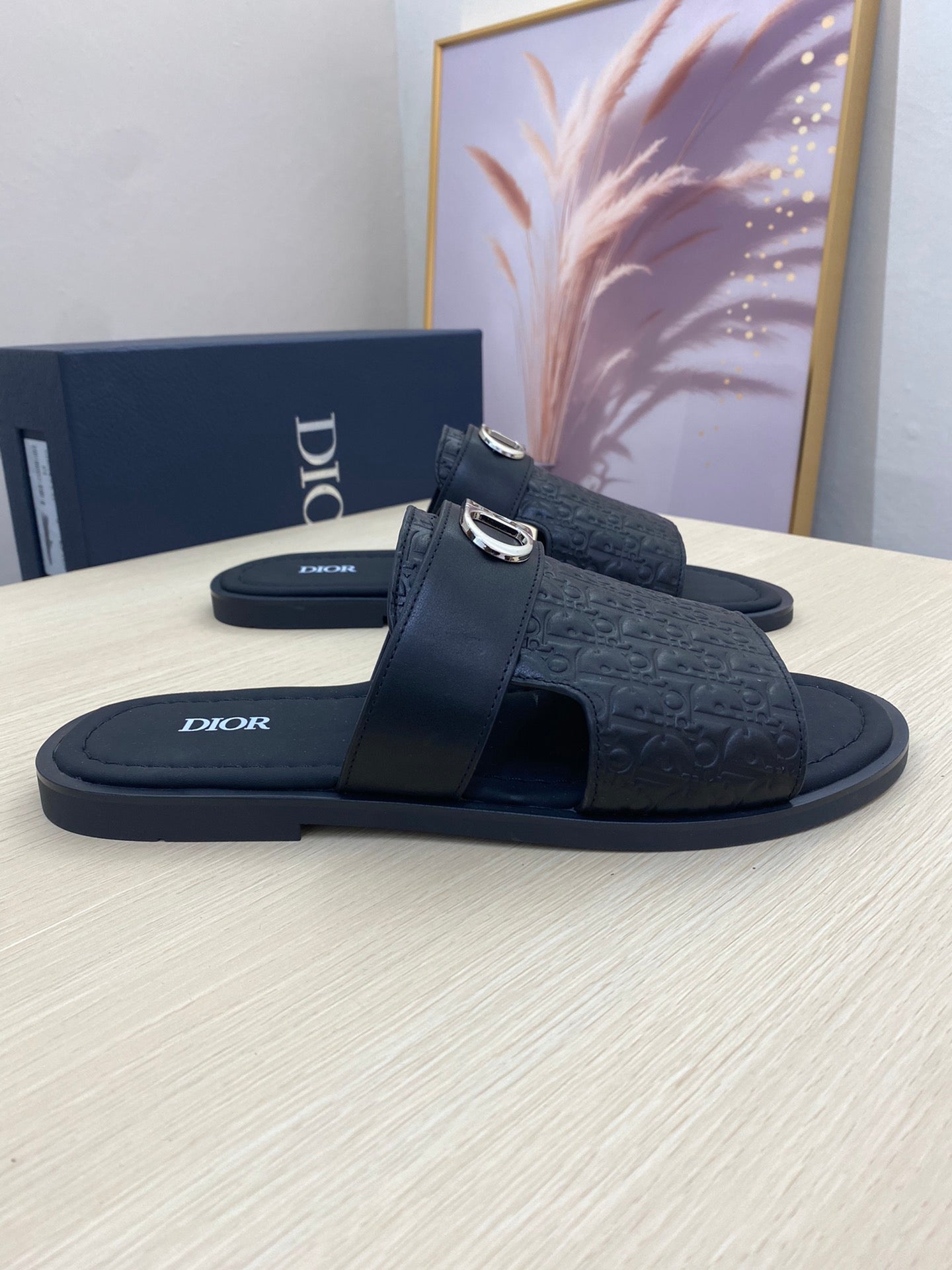 CD DOUBLE STRAP SLIPPER BLACK MONOGRAM CALFSKIN