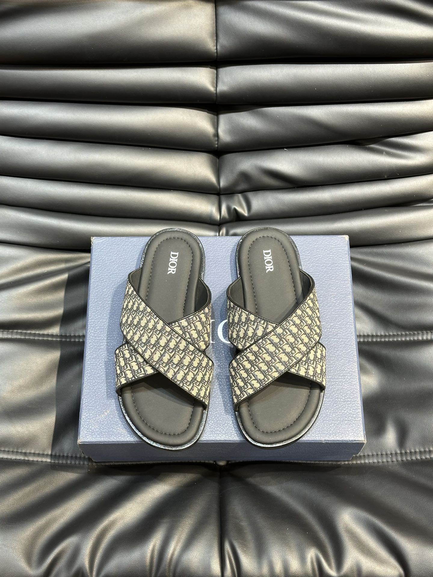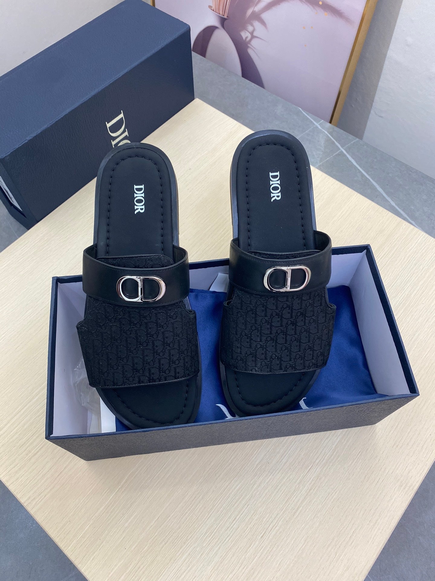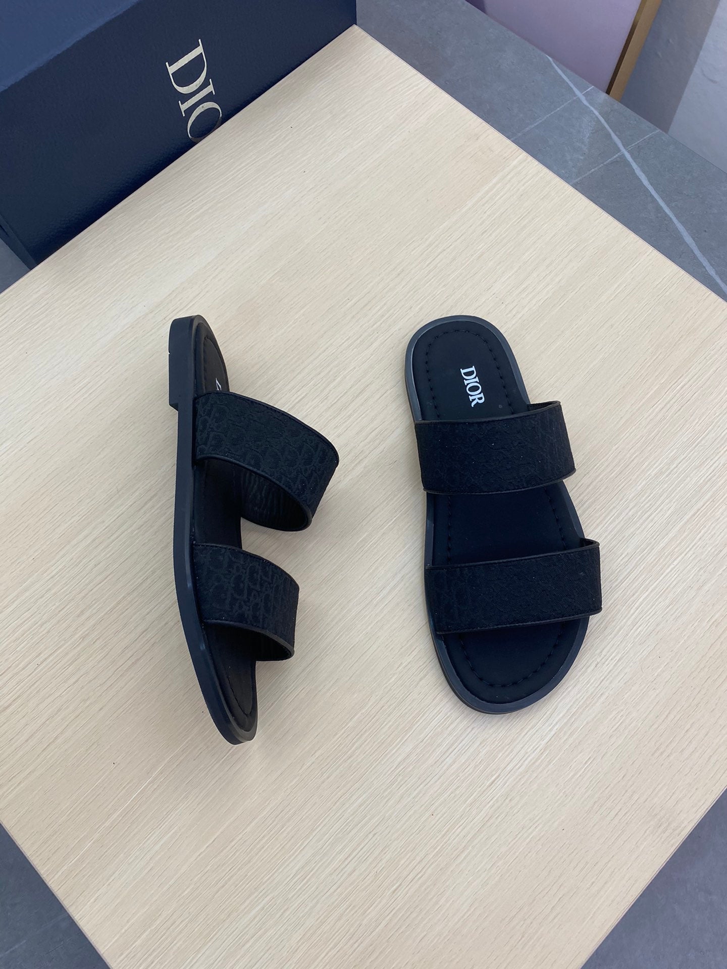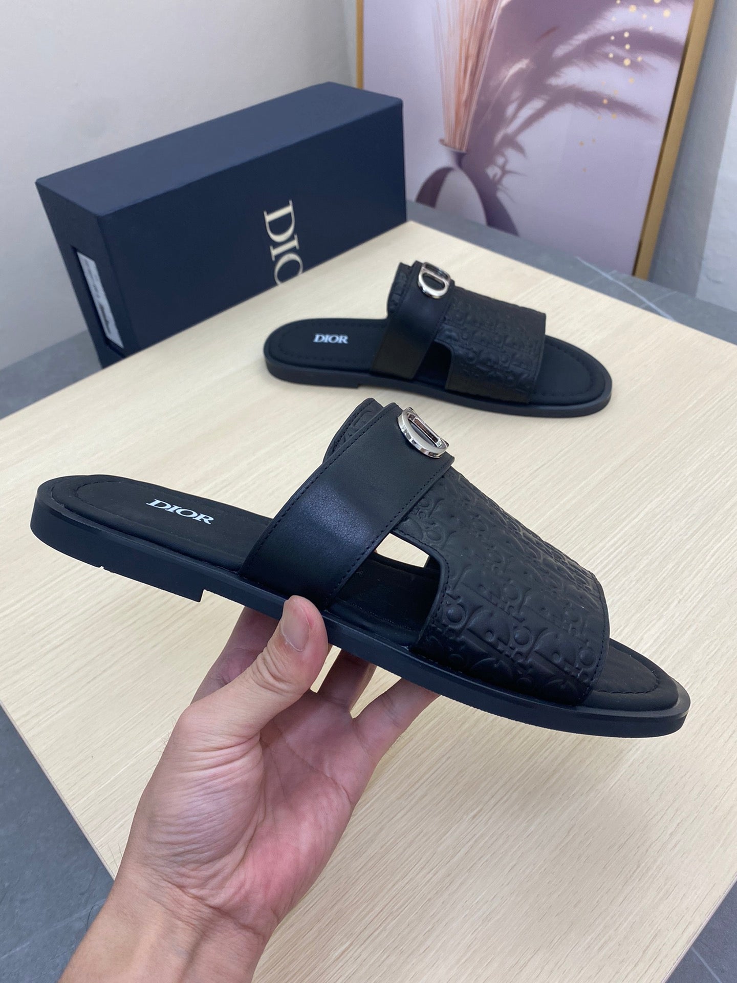 CD DOUBLE STRAP SLIPPER BLACK MONOGRAM CALFSKIN