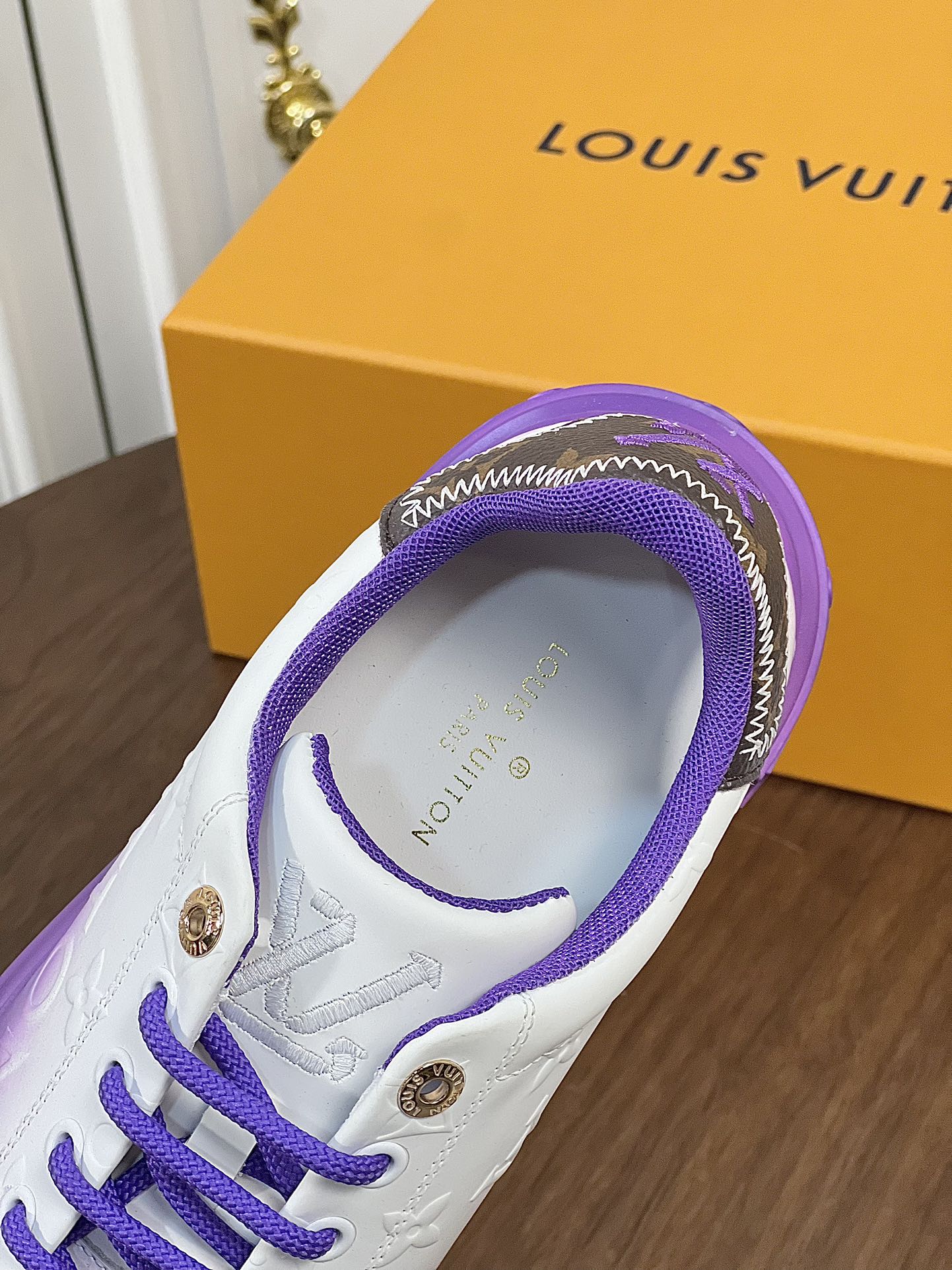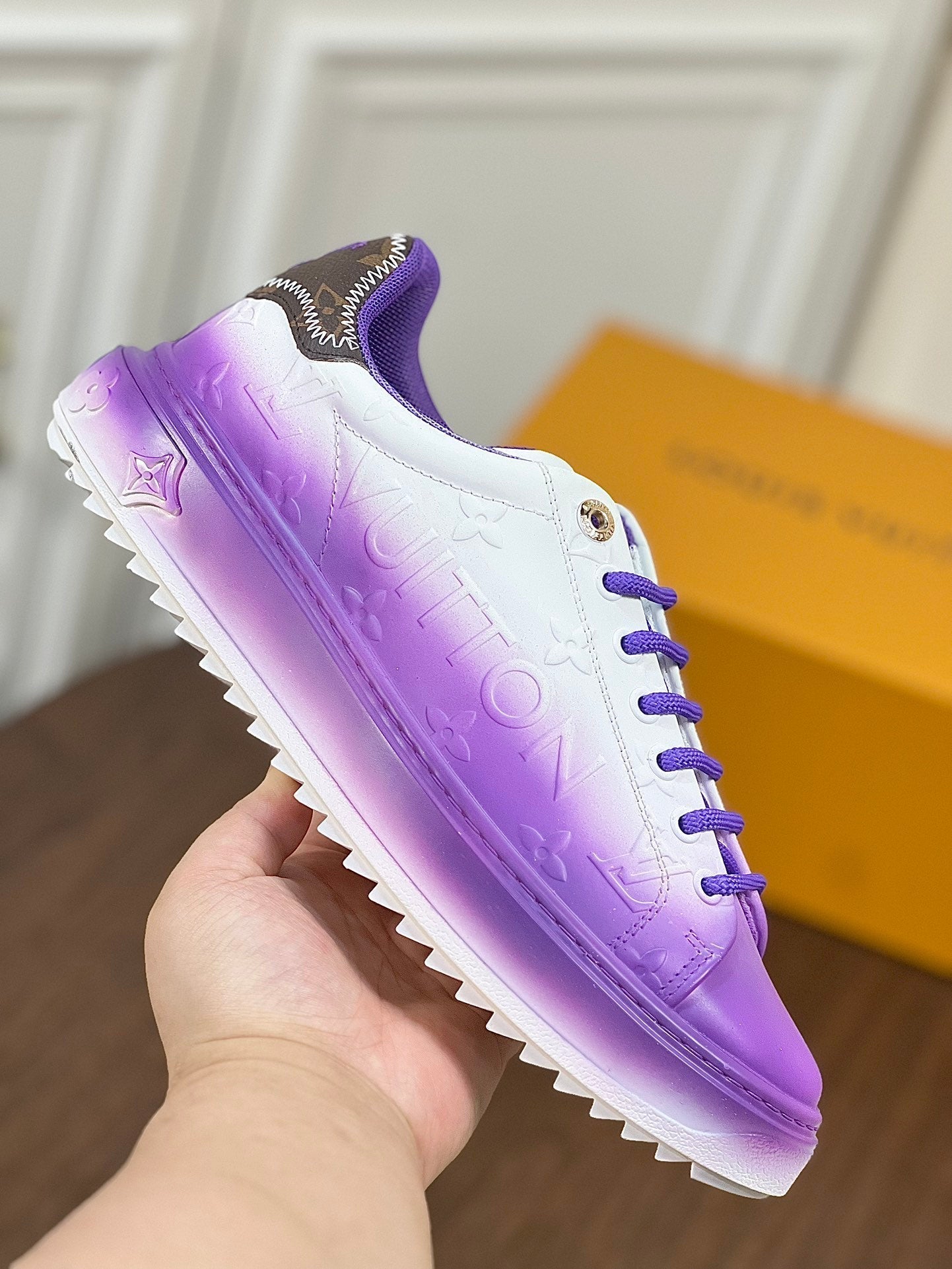 LV TIME OUT SNEAKER PURPLE MIX WHITE CALFSKIN