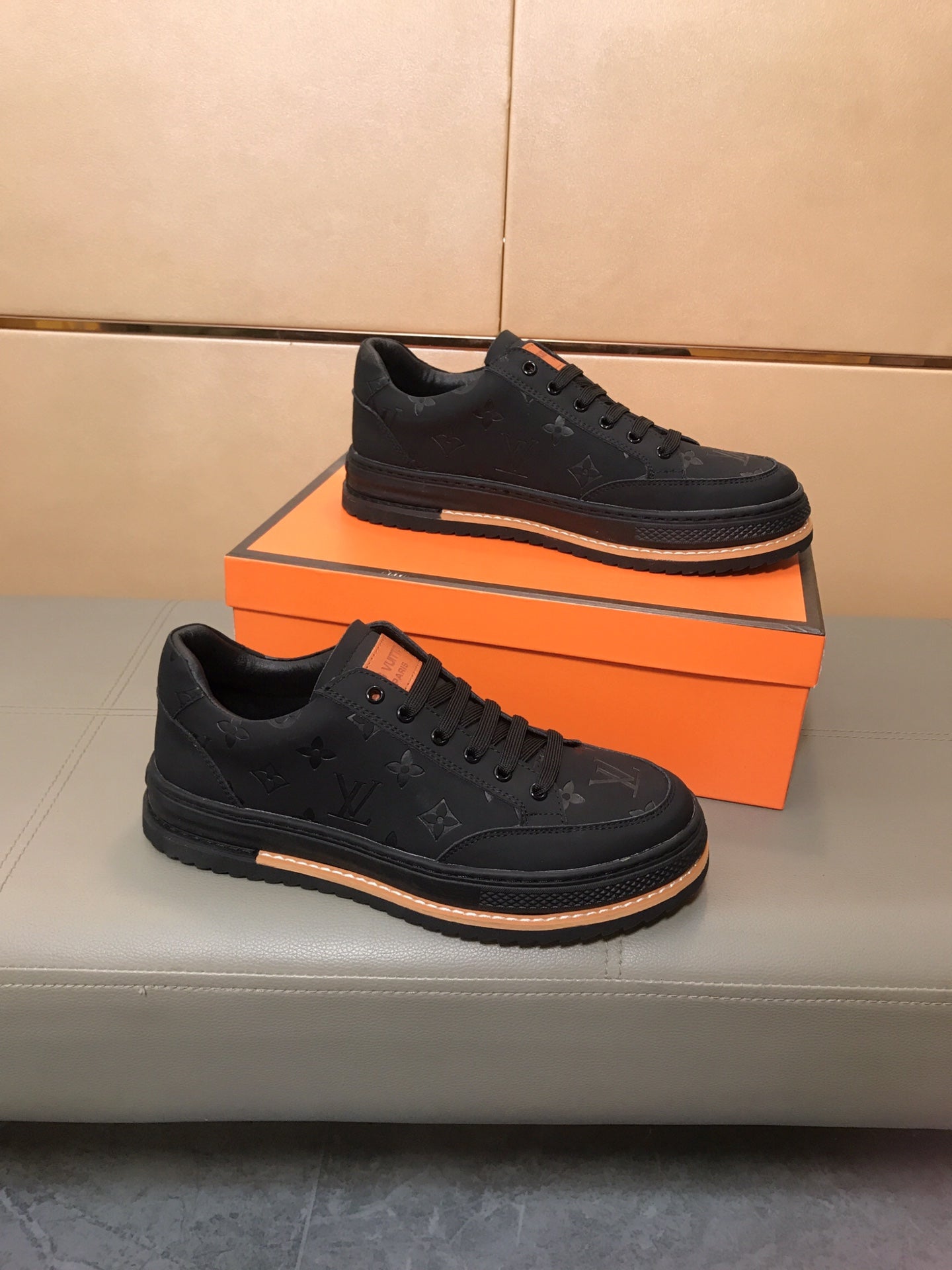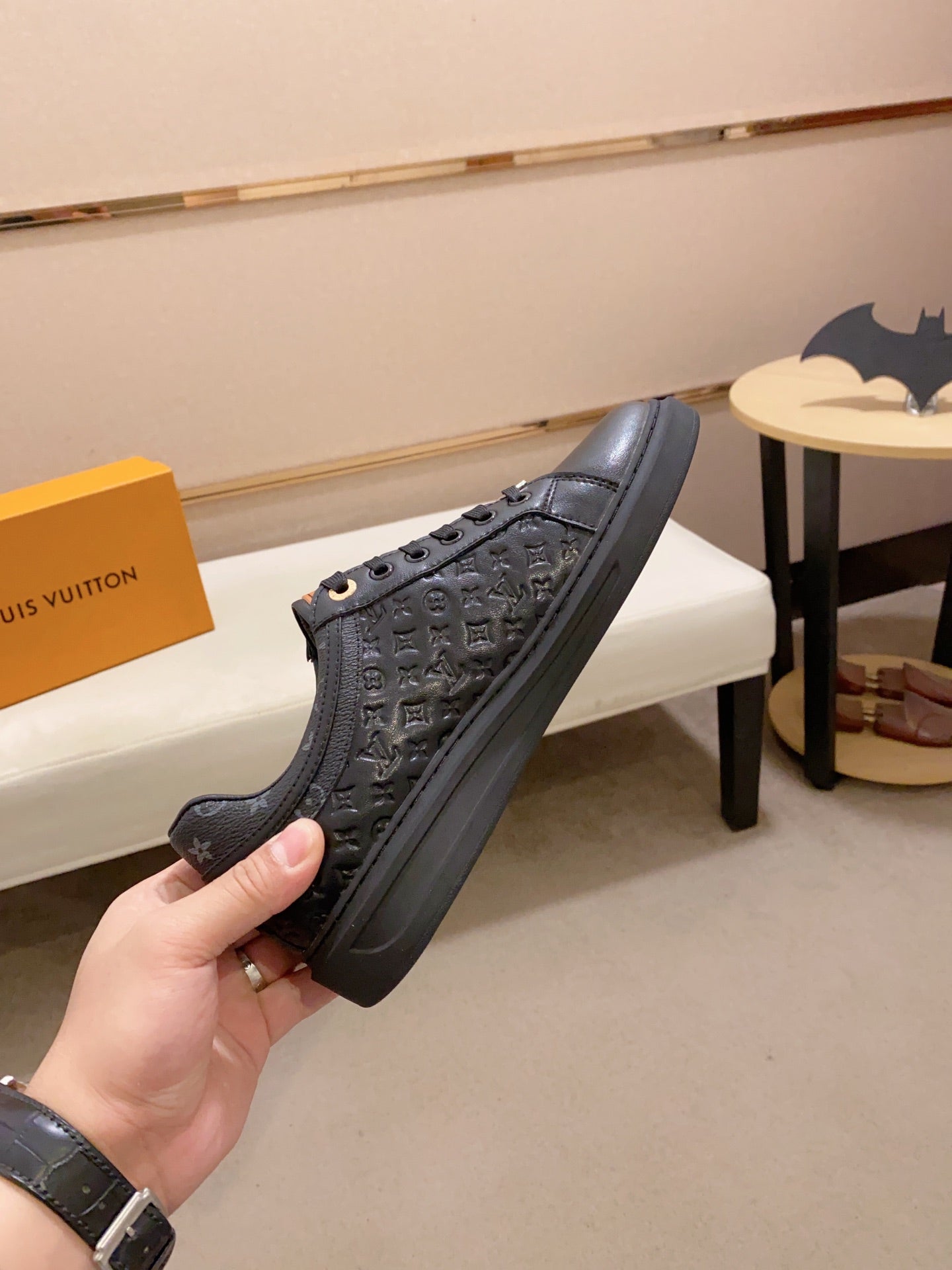 LV TRAINER IN EMBOSSED BLACK SUEDE