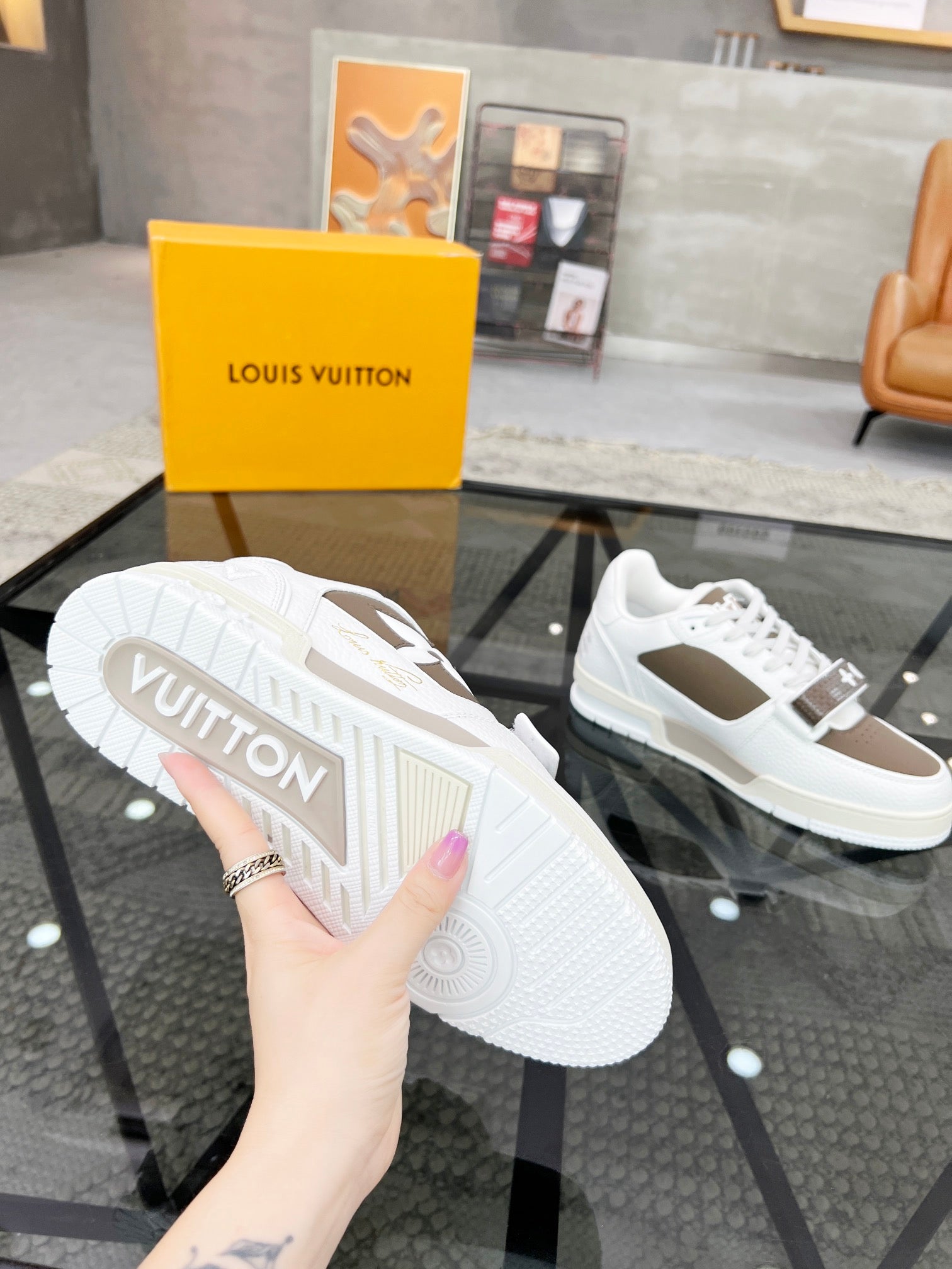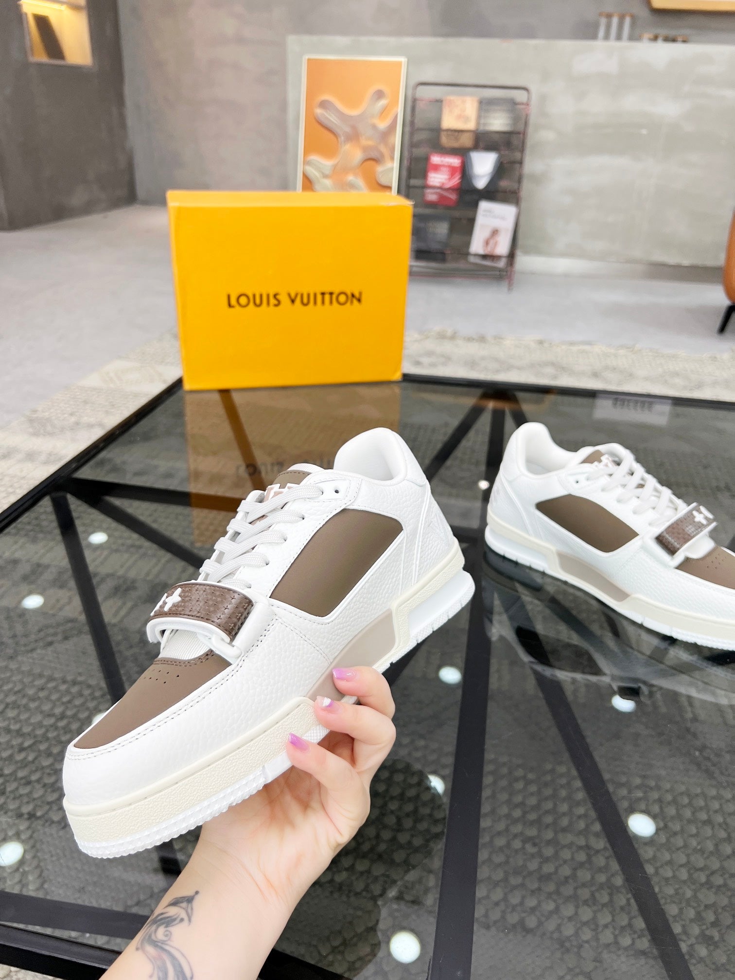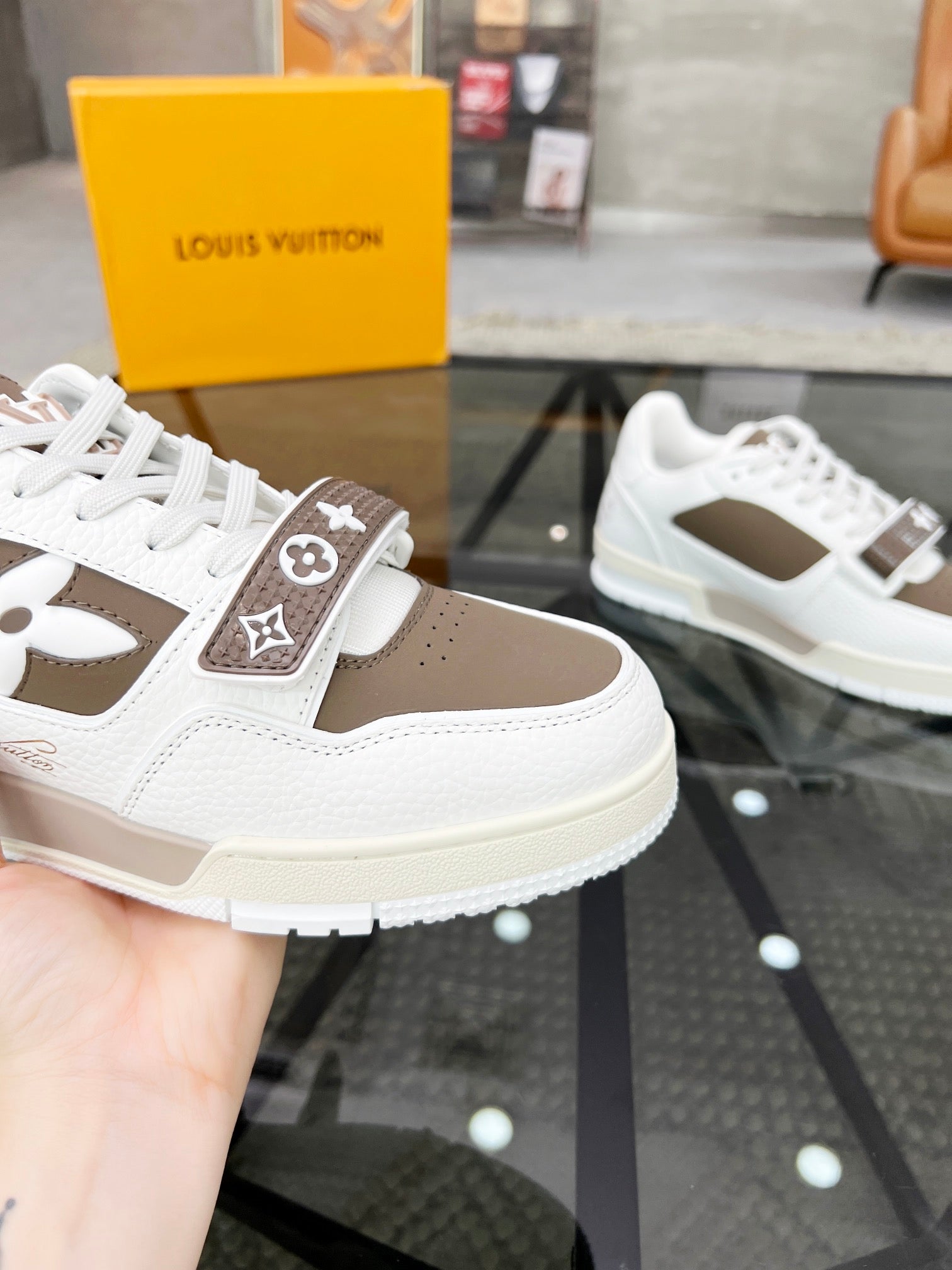 LV TRAINER IN WHITE MIX CHOCOLATE BROWN CALFSKIN