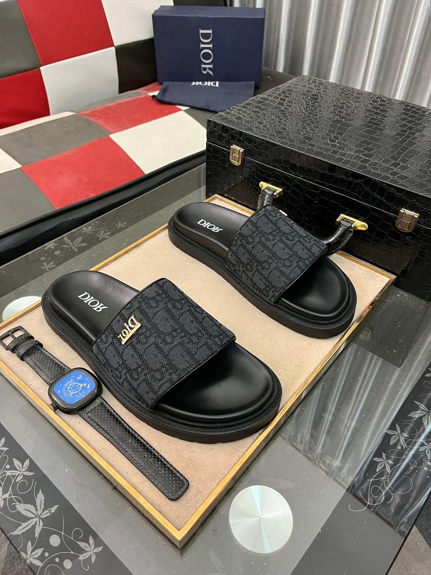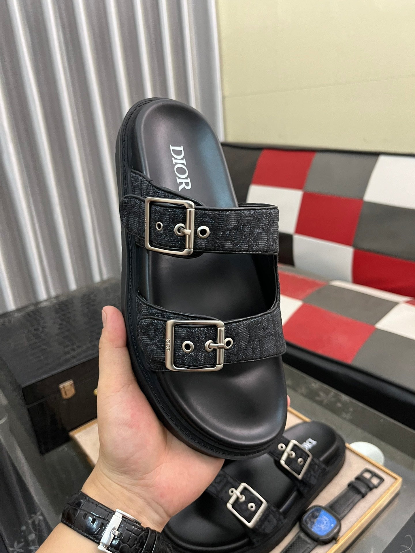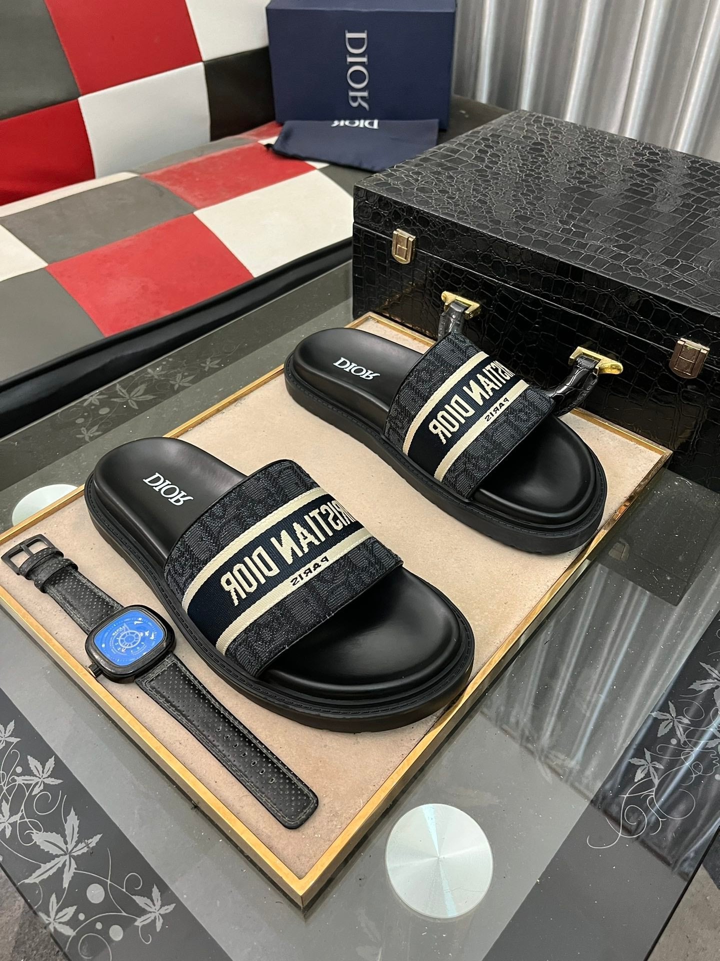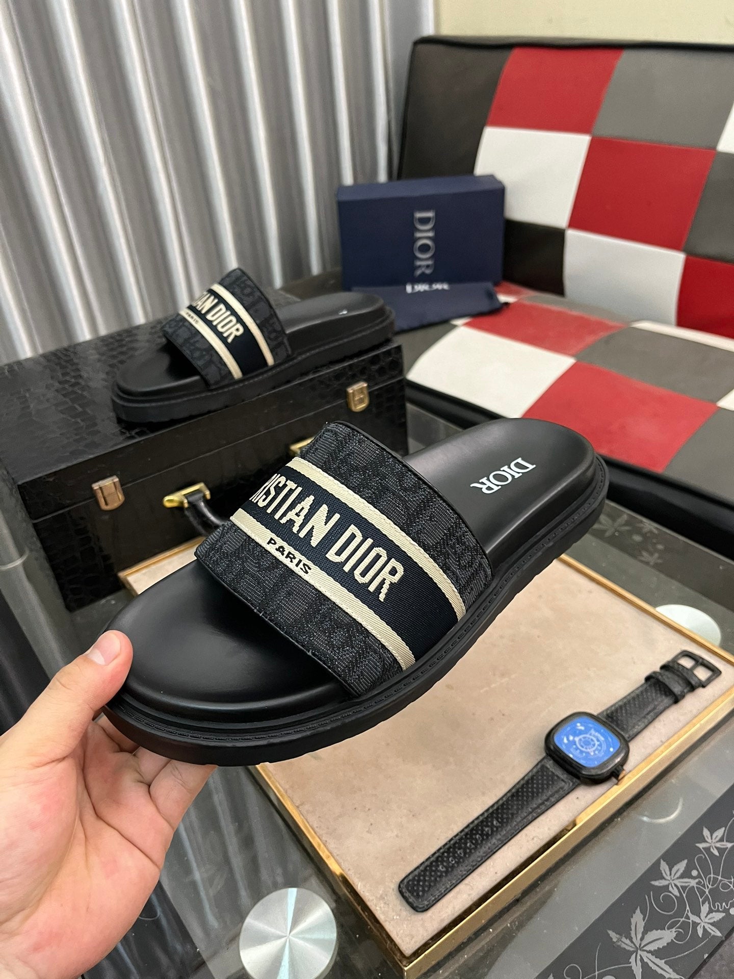 CD AQUA SLIDE SANDAL BLACK MONOGRAM CALFSKIN