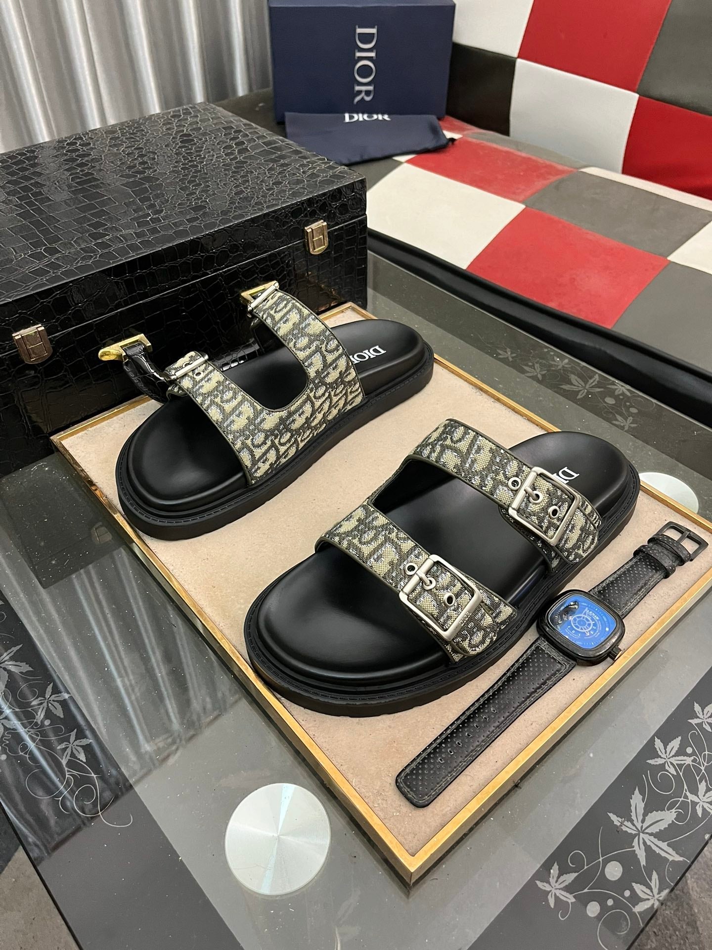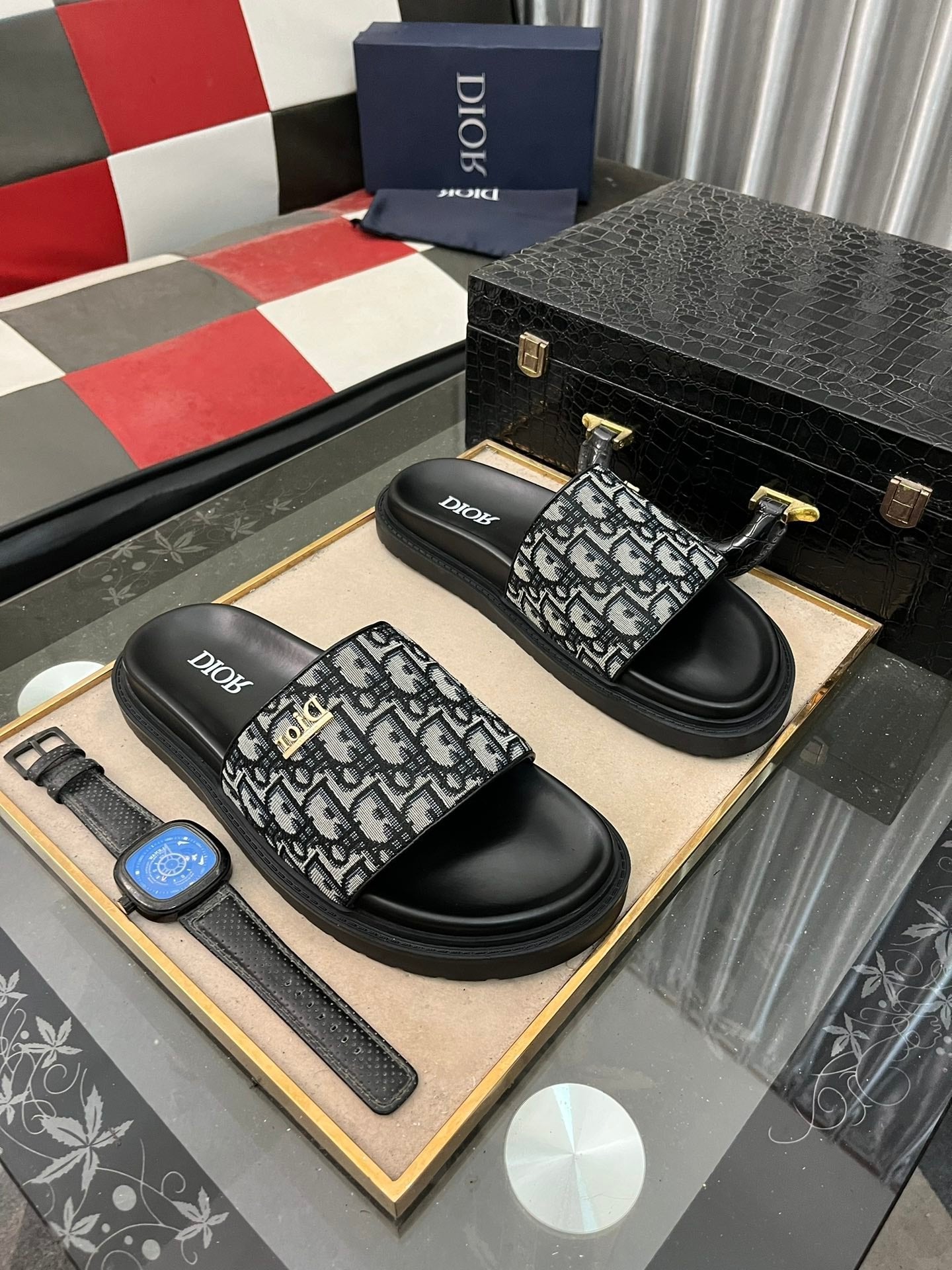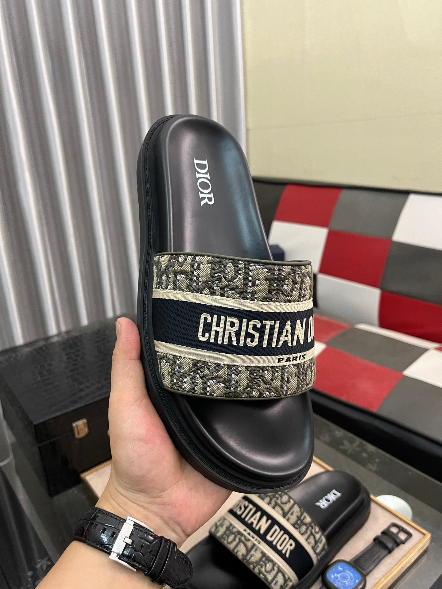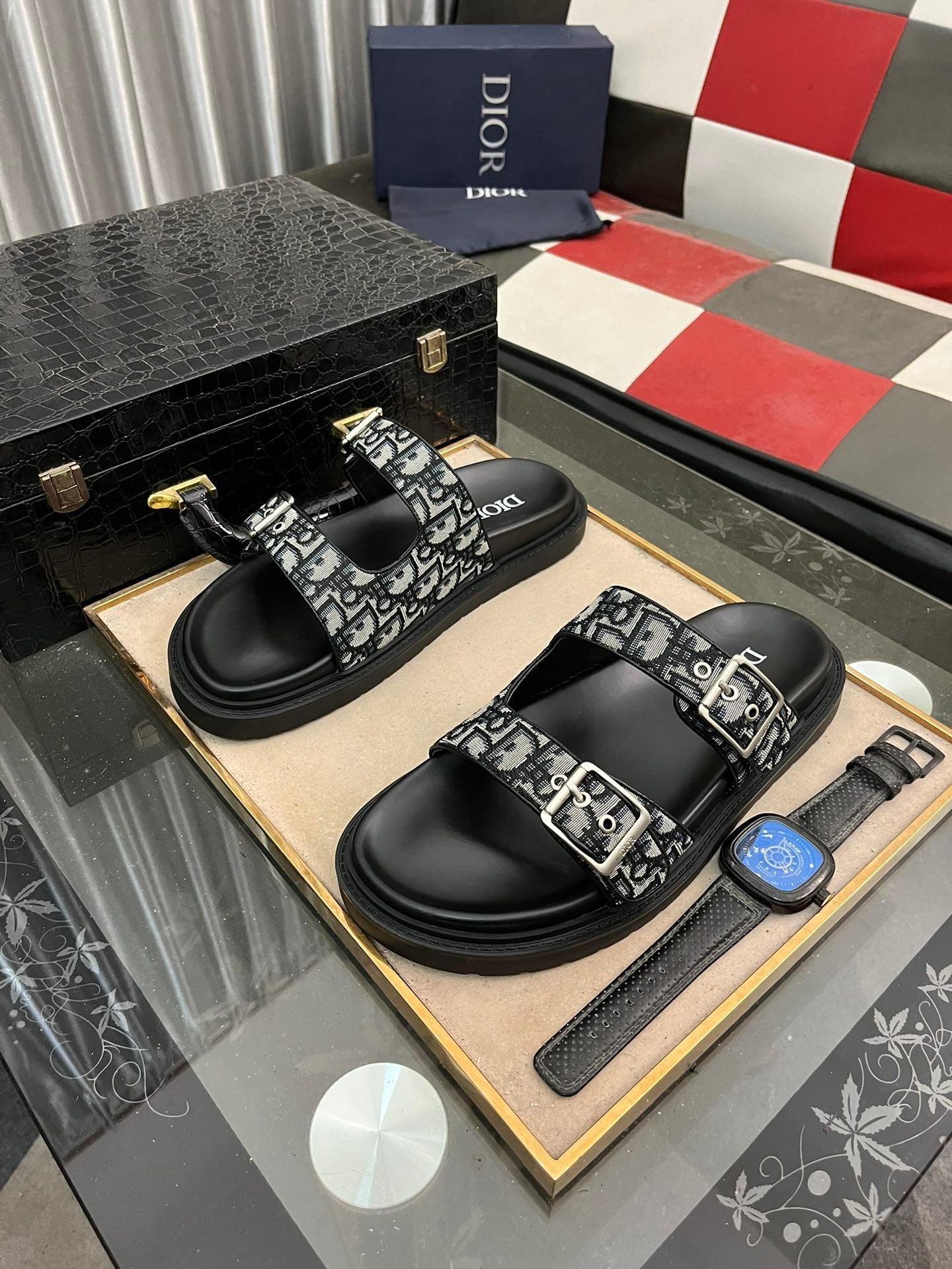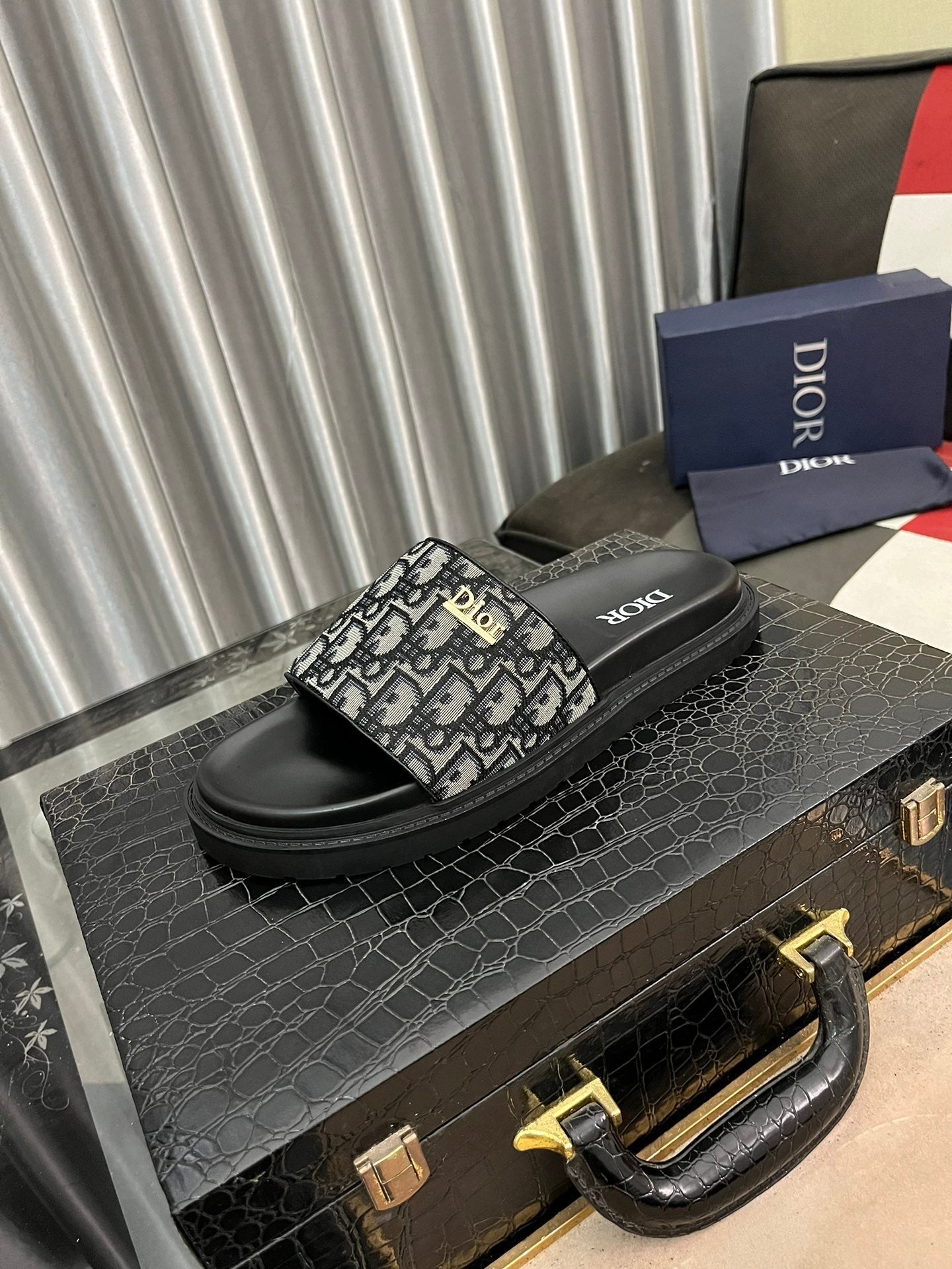CD AQUA SLIDE SANDAL BLACK MONOGRAM CALFSKIN