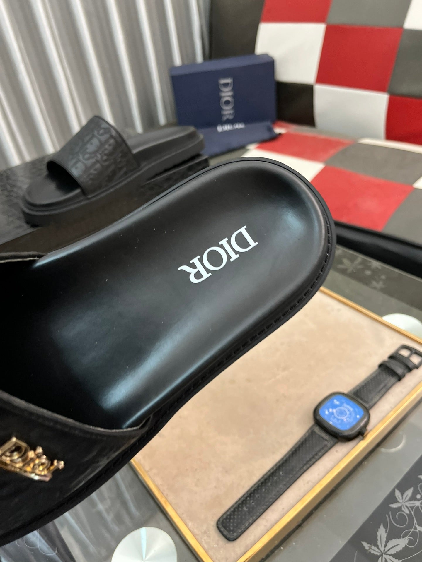 CD SLIDE LETTER SLIPPER BLACK CALFSKIN