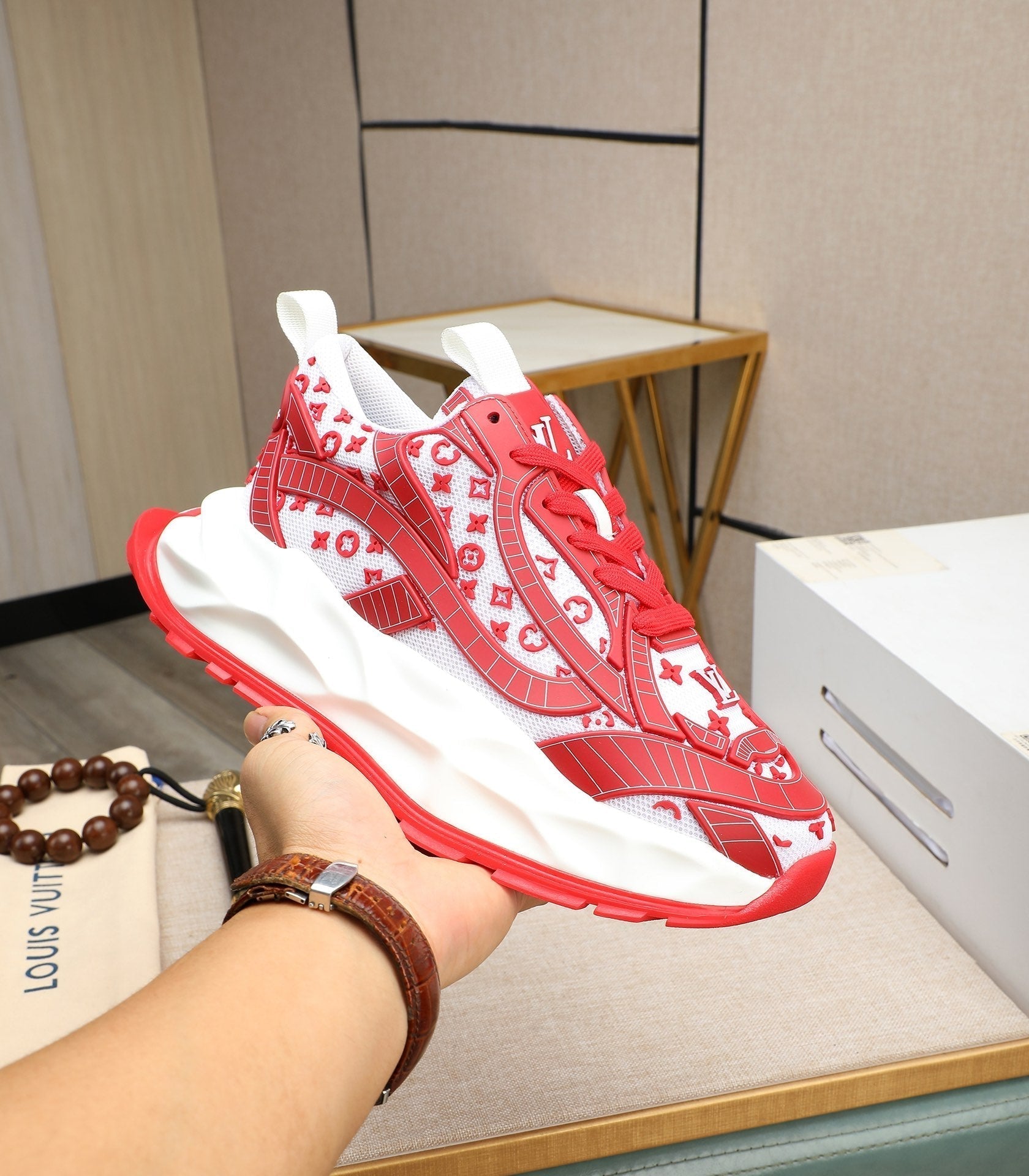 LV TRAINER WHITE MIX RED CALFSKIN AND BREATHABLE MESH