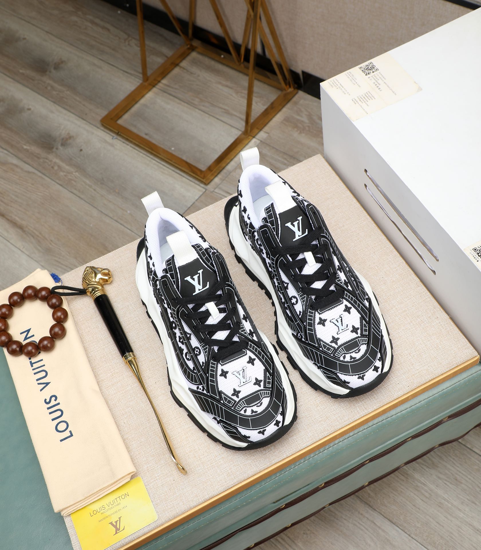 LV TRAINER WHITE MIX BLACK CALFSKIN AND BREATHABLE MESH