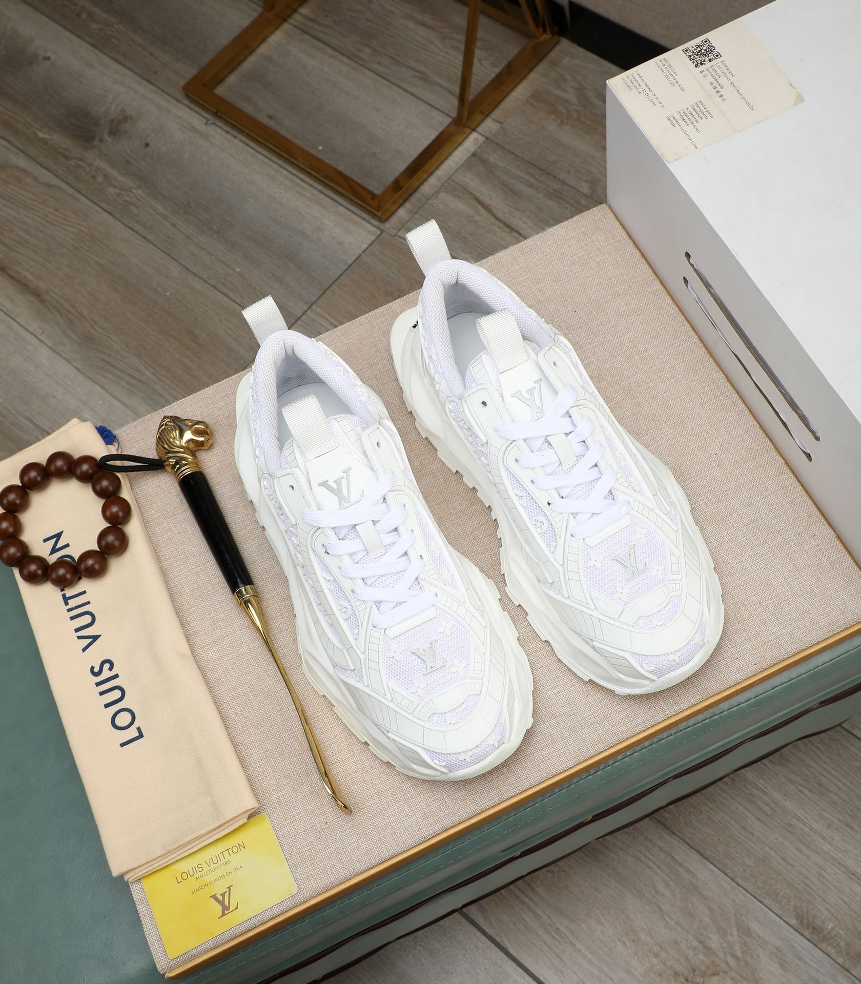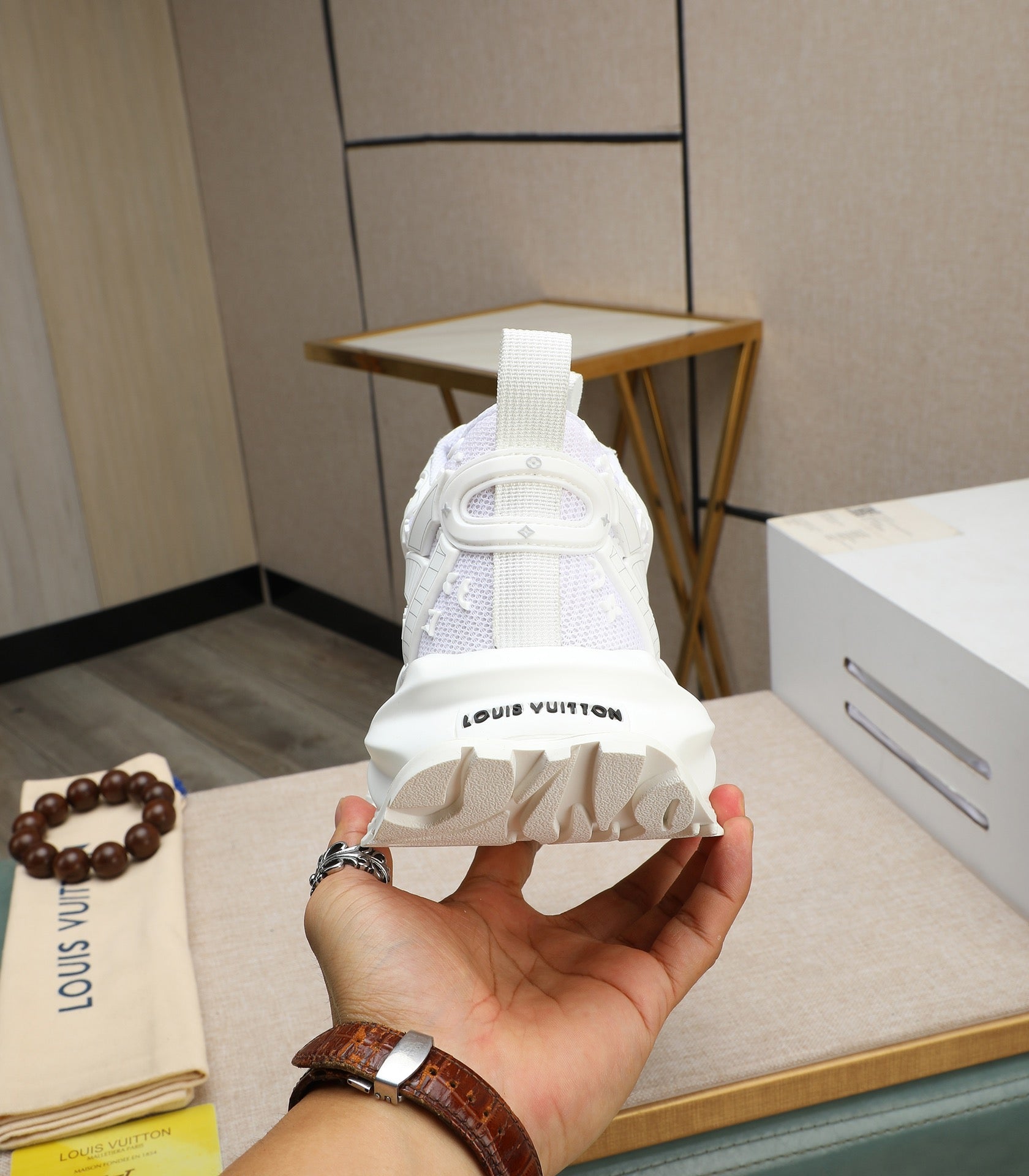 LV TRAINER IN WHITE CALFSKIN AND BREATHABLE MESH