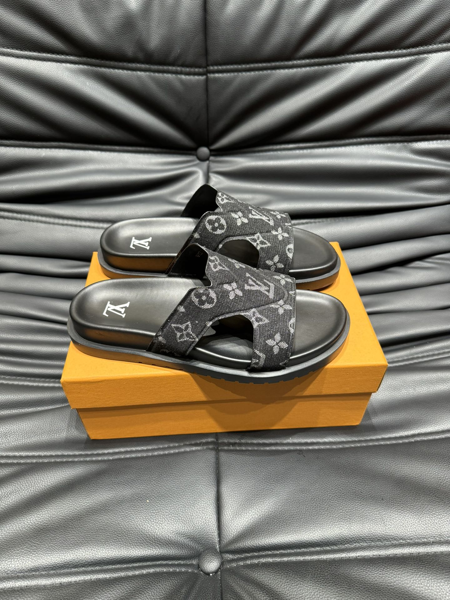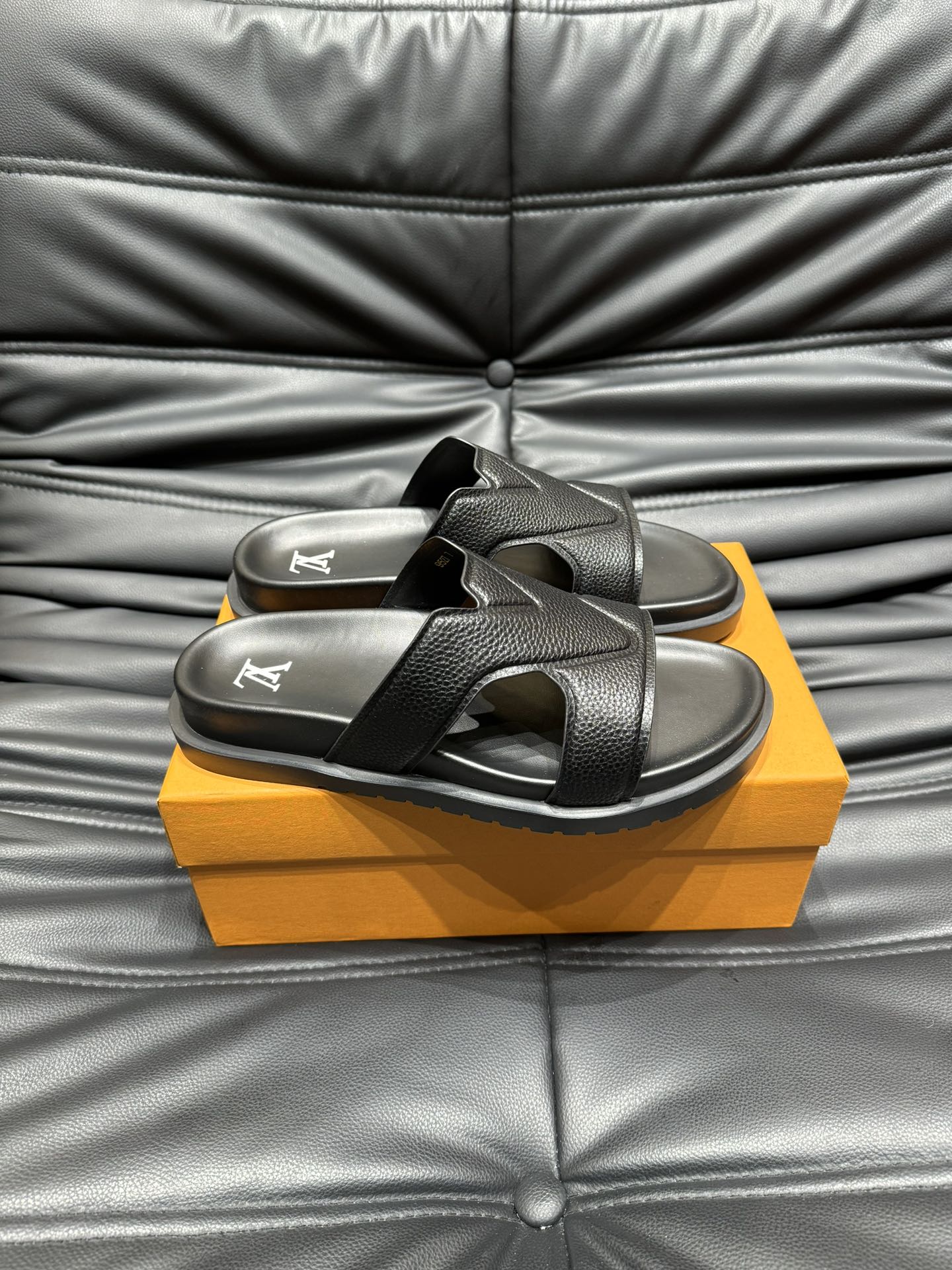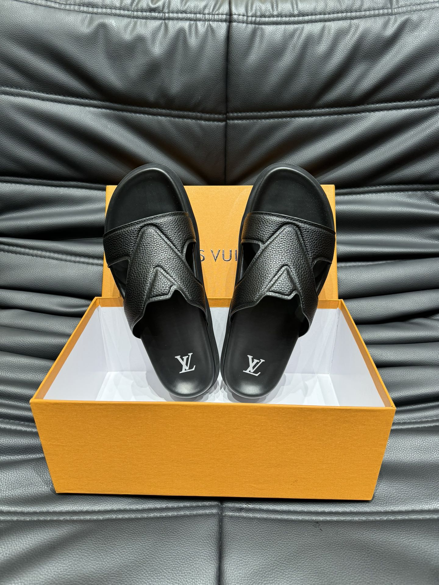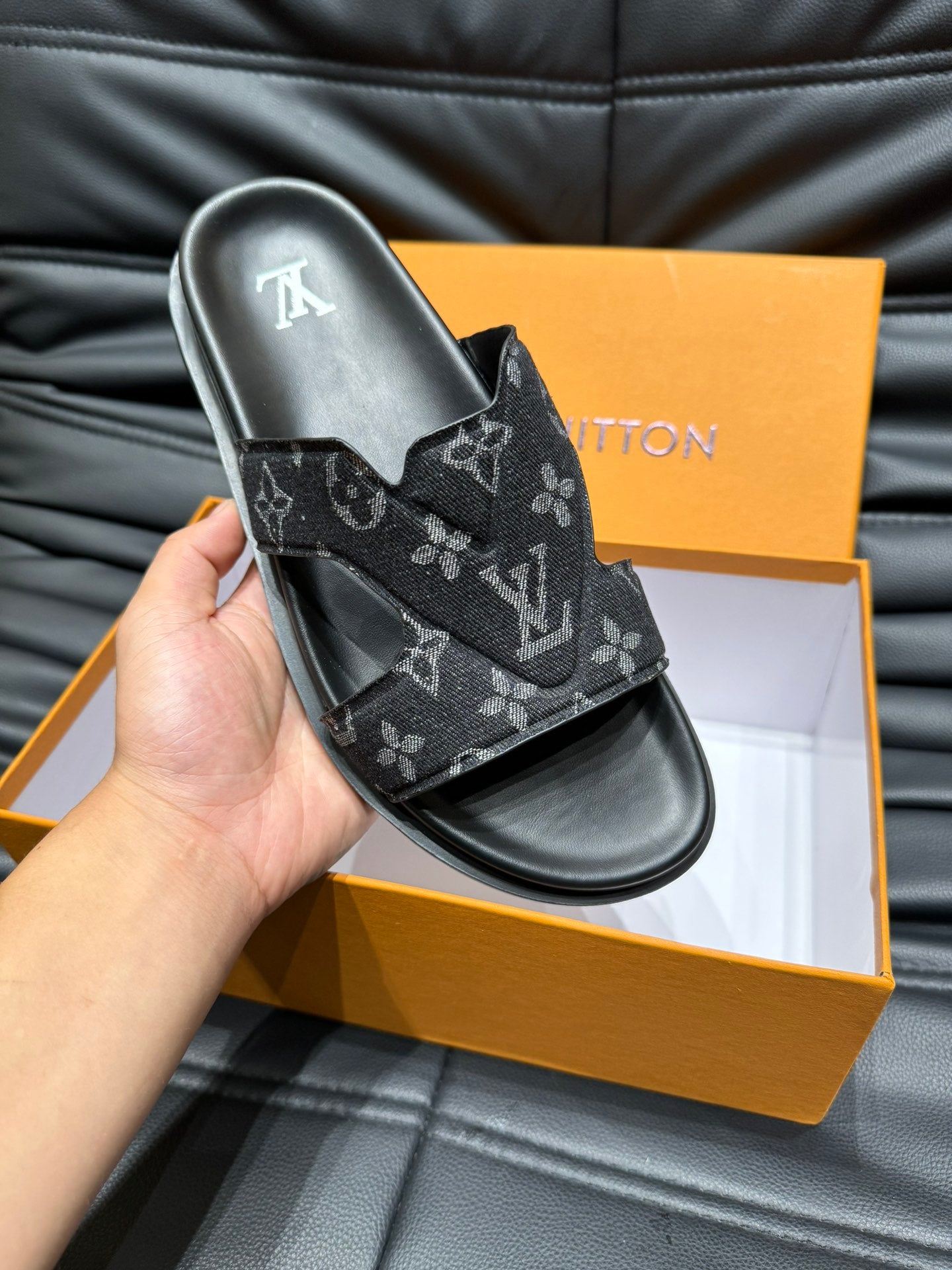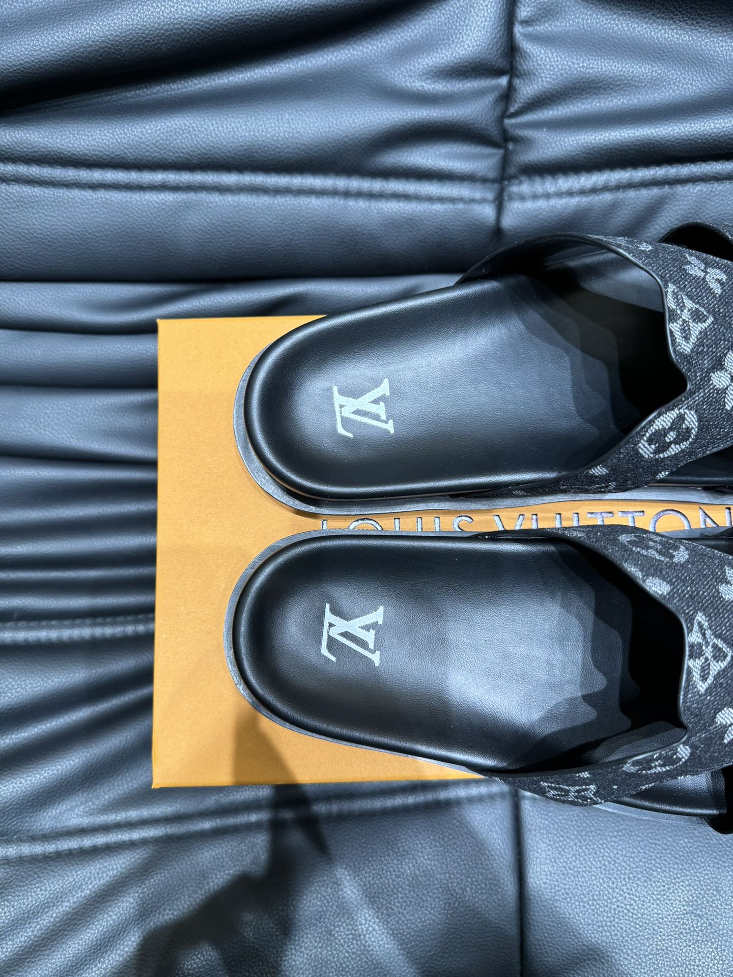 LV SLIPPERS IN BLACK MONOGRAM CALFSKIN