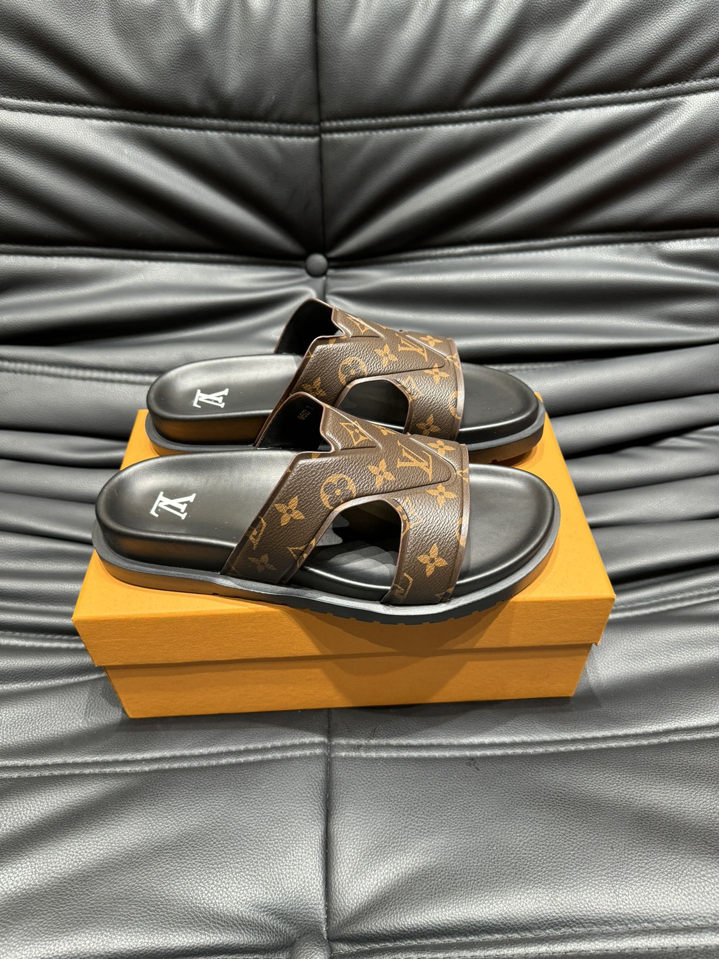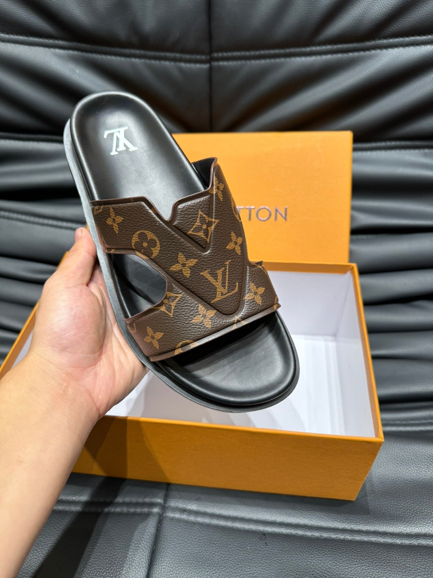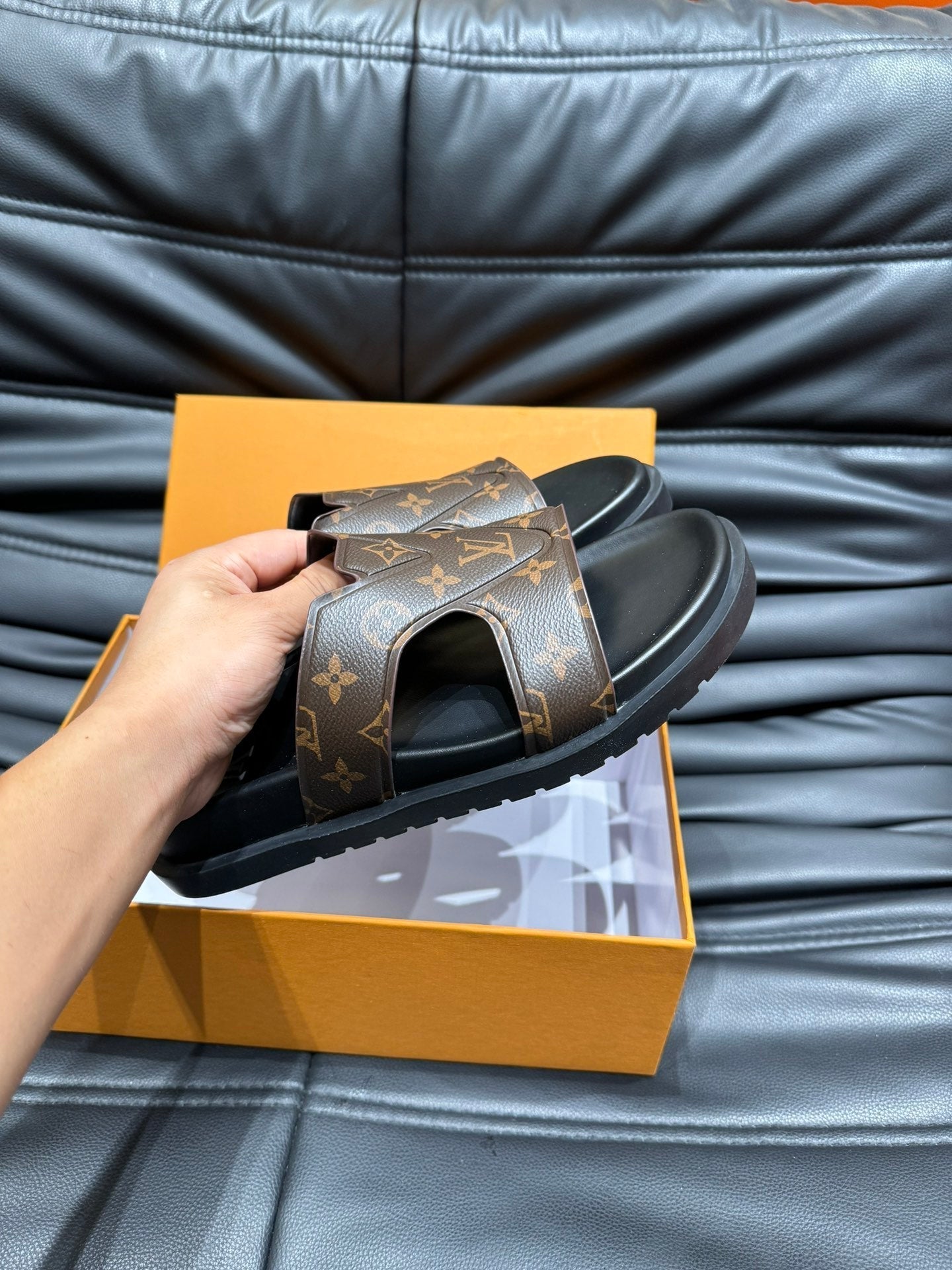 LV THONG SLIPPER IN CHOCOLATE BROWN MONOGRAM CALFSKIN